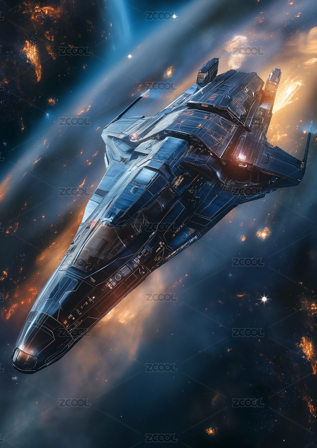 科技科幻未来宇宙太空中的飞船3D立体插画