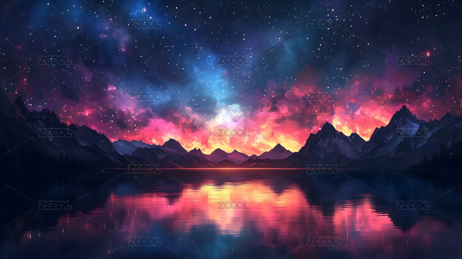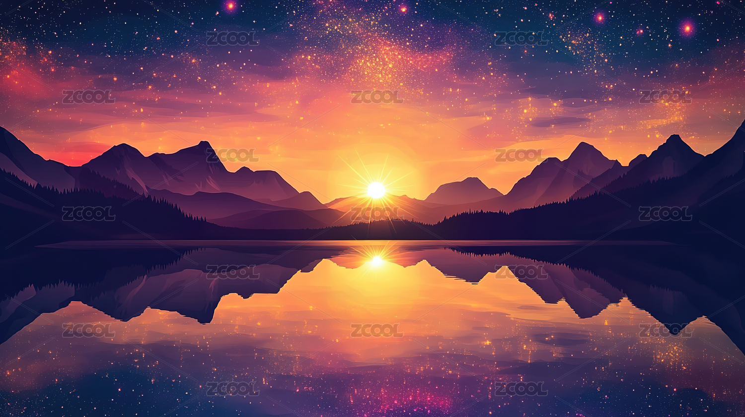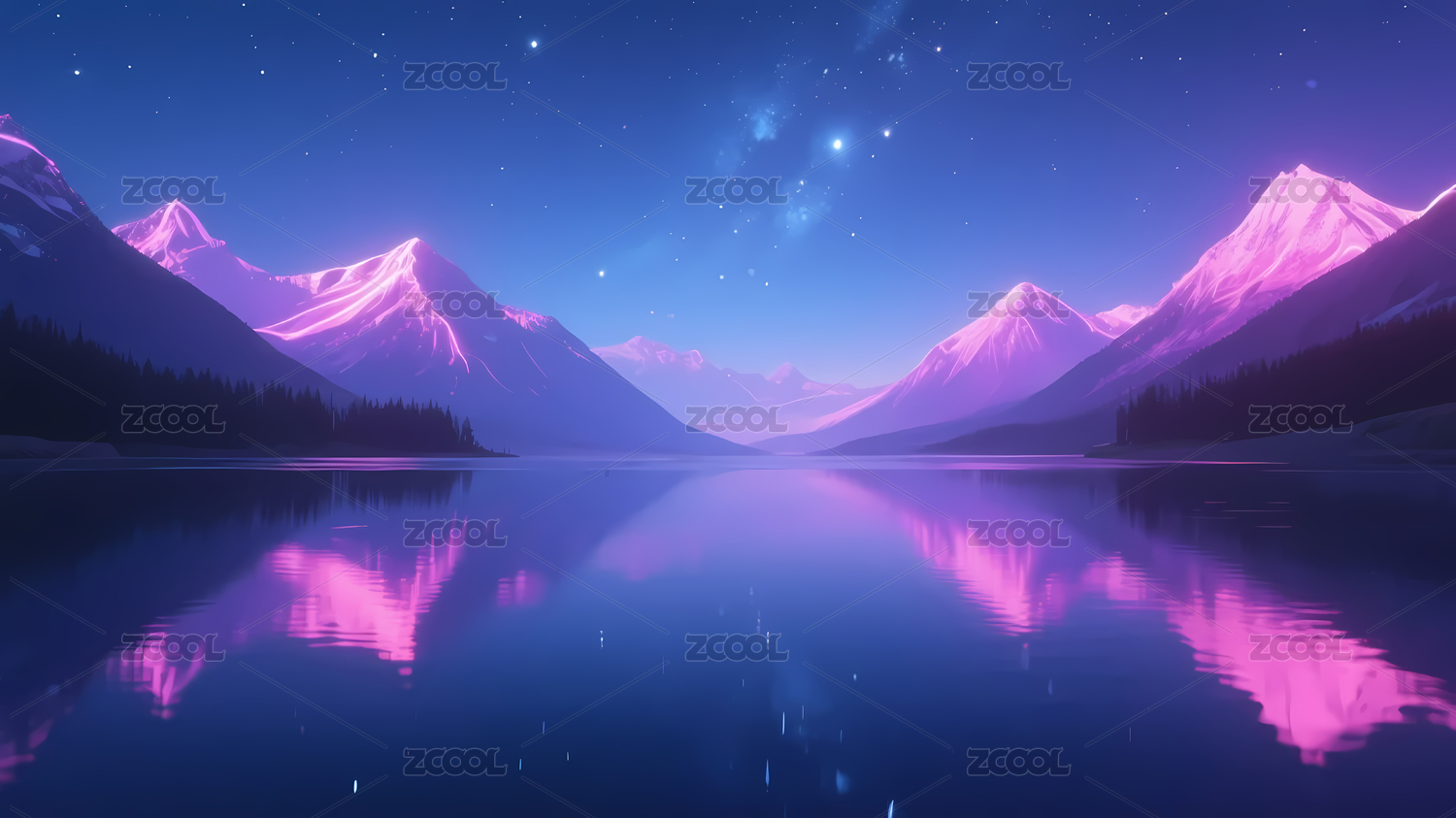 平静,蓝色,紫色,唯美,风光,风景,宁静,安静,倒影,高山