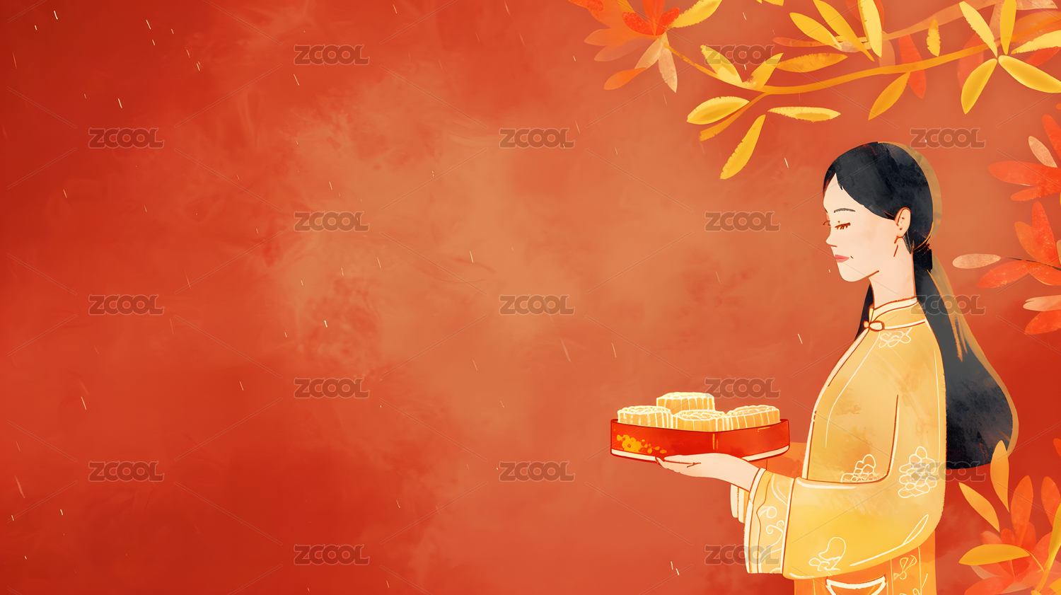 中秋节中国风月饼和人物插画