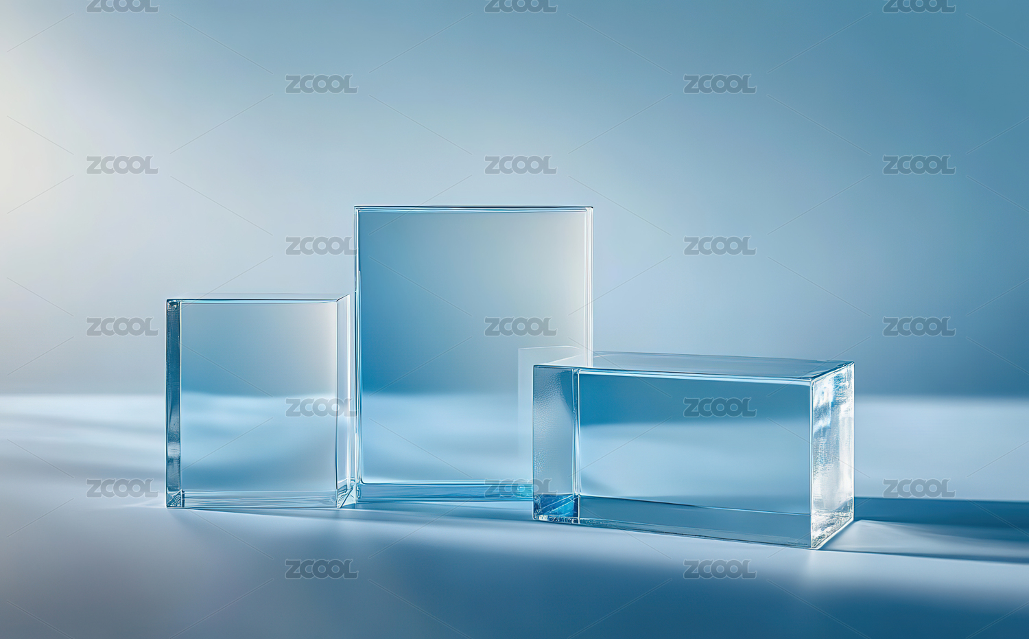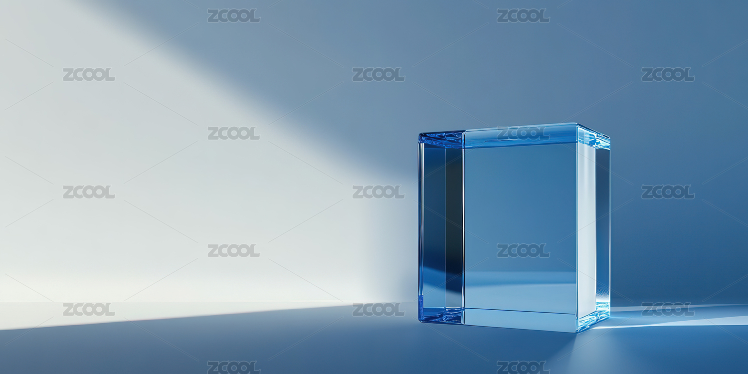 蓝色光效与透明立方体
