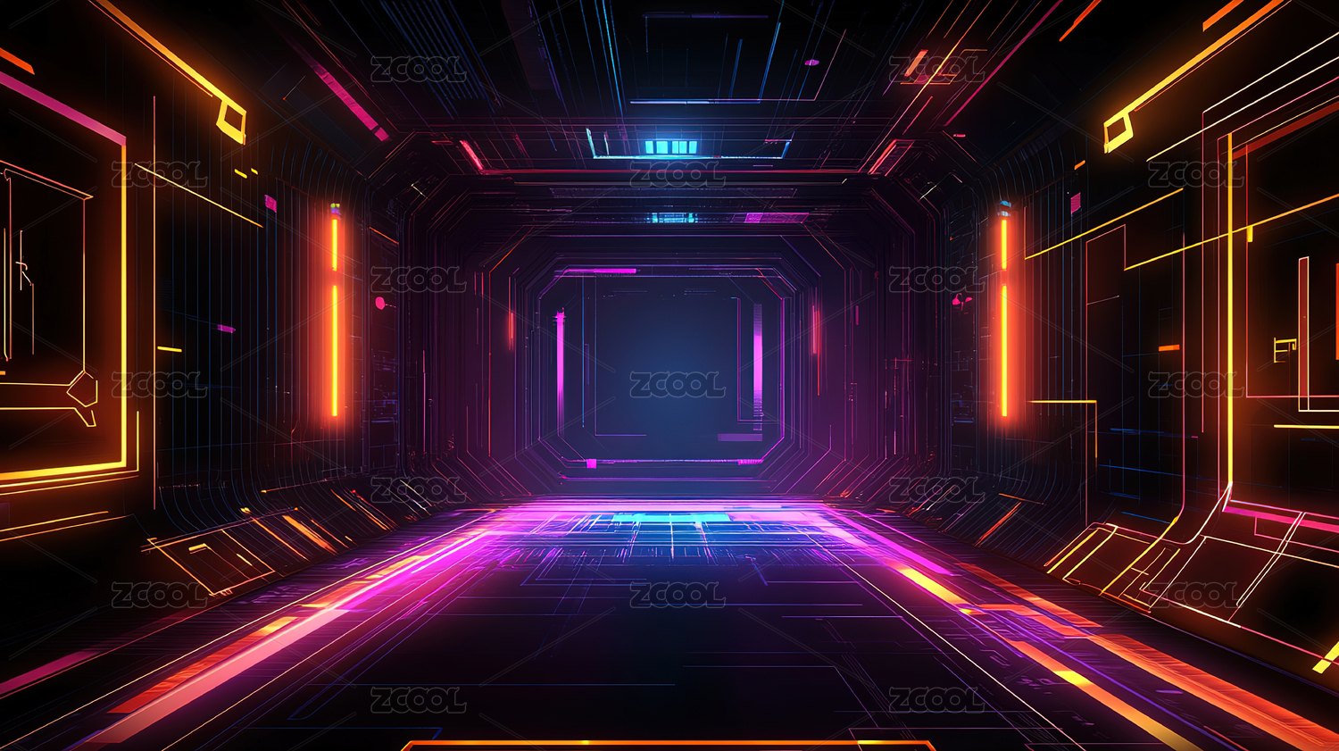 蓝色,背景,金色,线条,矩形,隧道,白色,圆圈,未来,科技