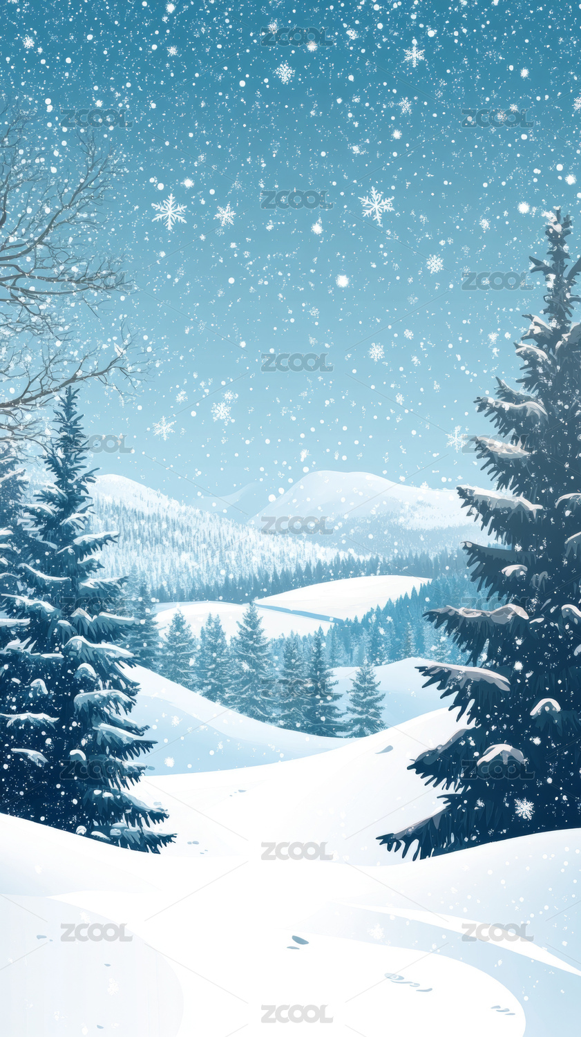 冬日雪景插图背景