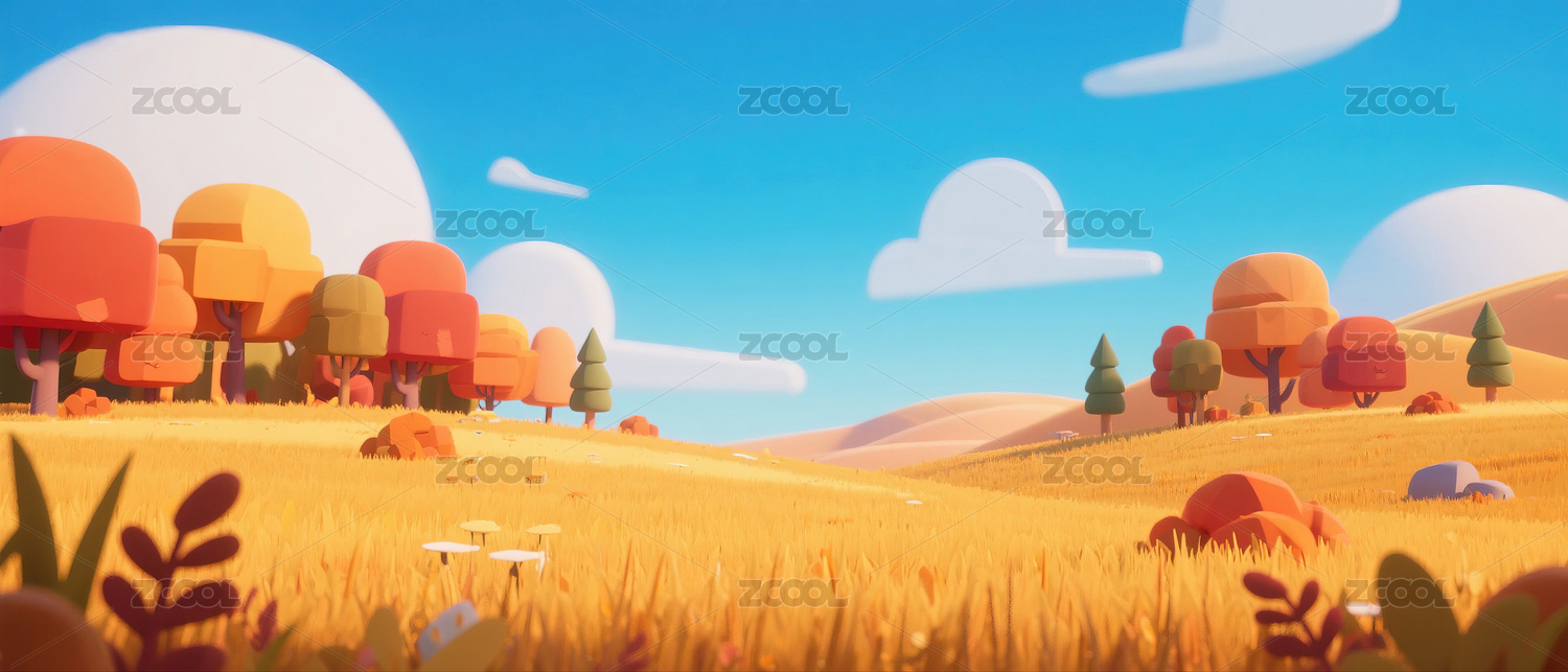晴天乡野道路旁大树下的旅行箱3D卡通插画