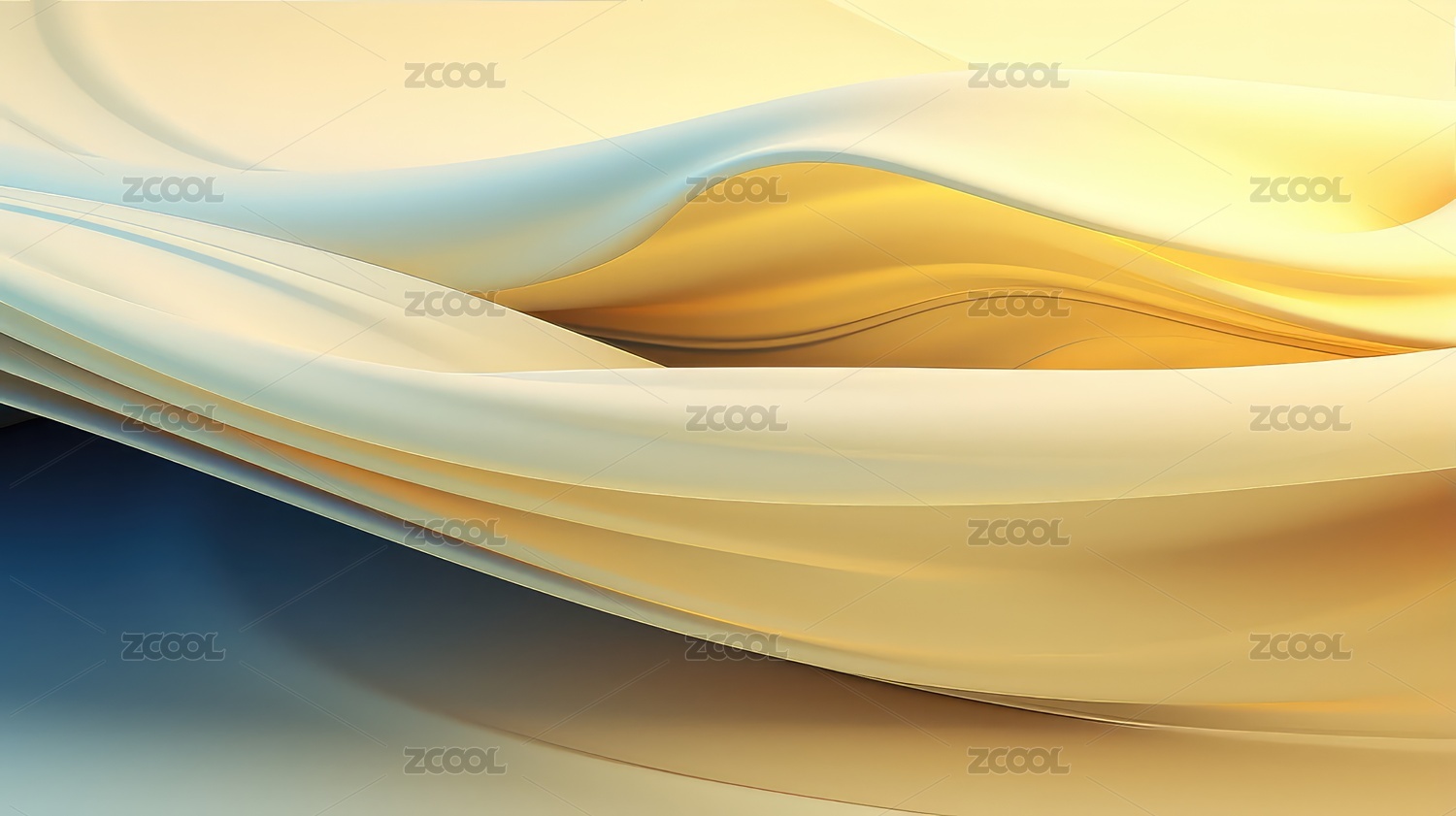 蓝色丝绸与金色线条的梦幻背景