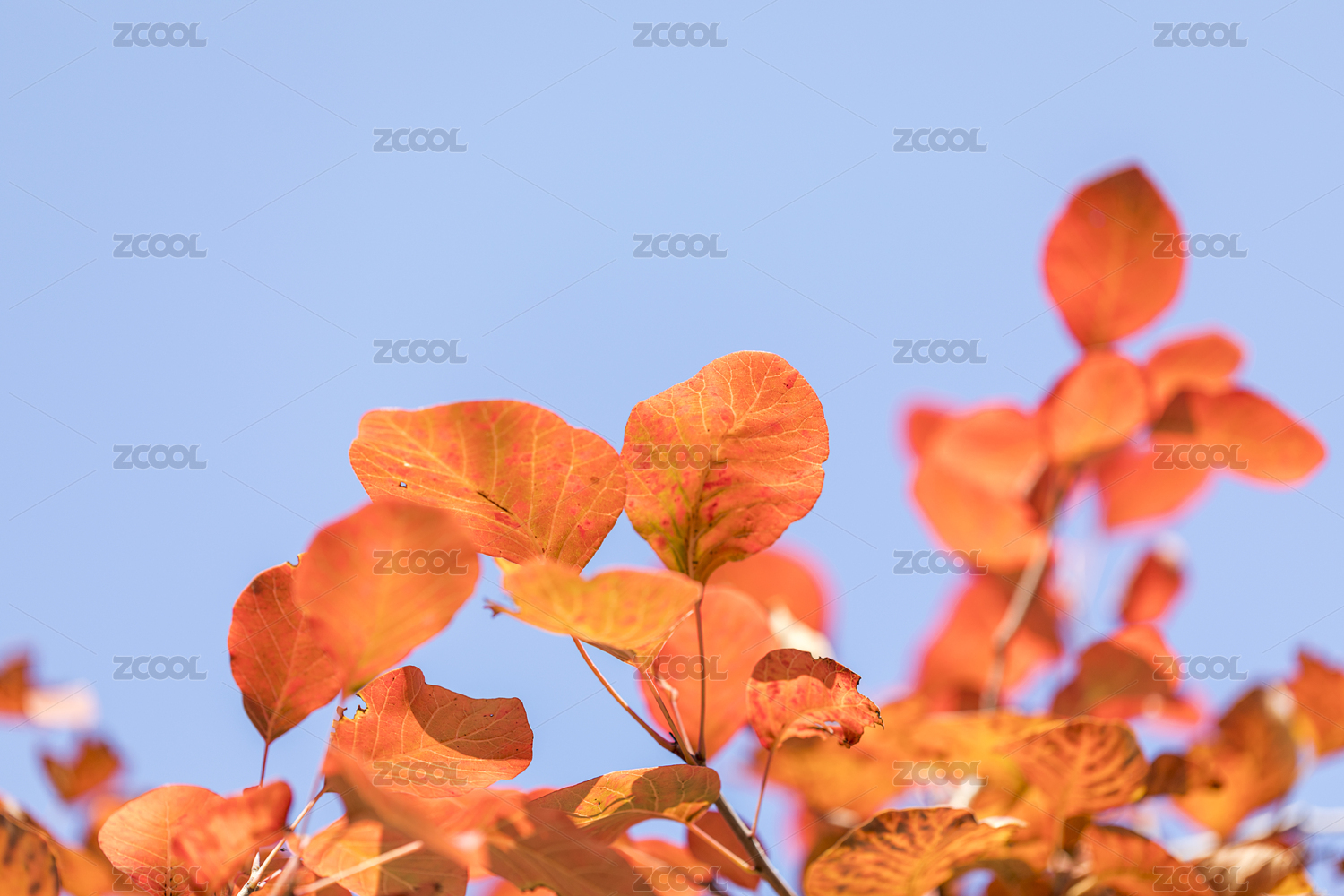 蓝天掩映下的山区路边红彤彤的黄栌叶子红叶