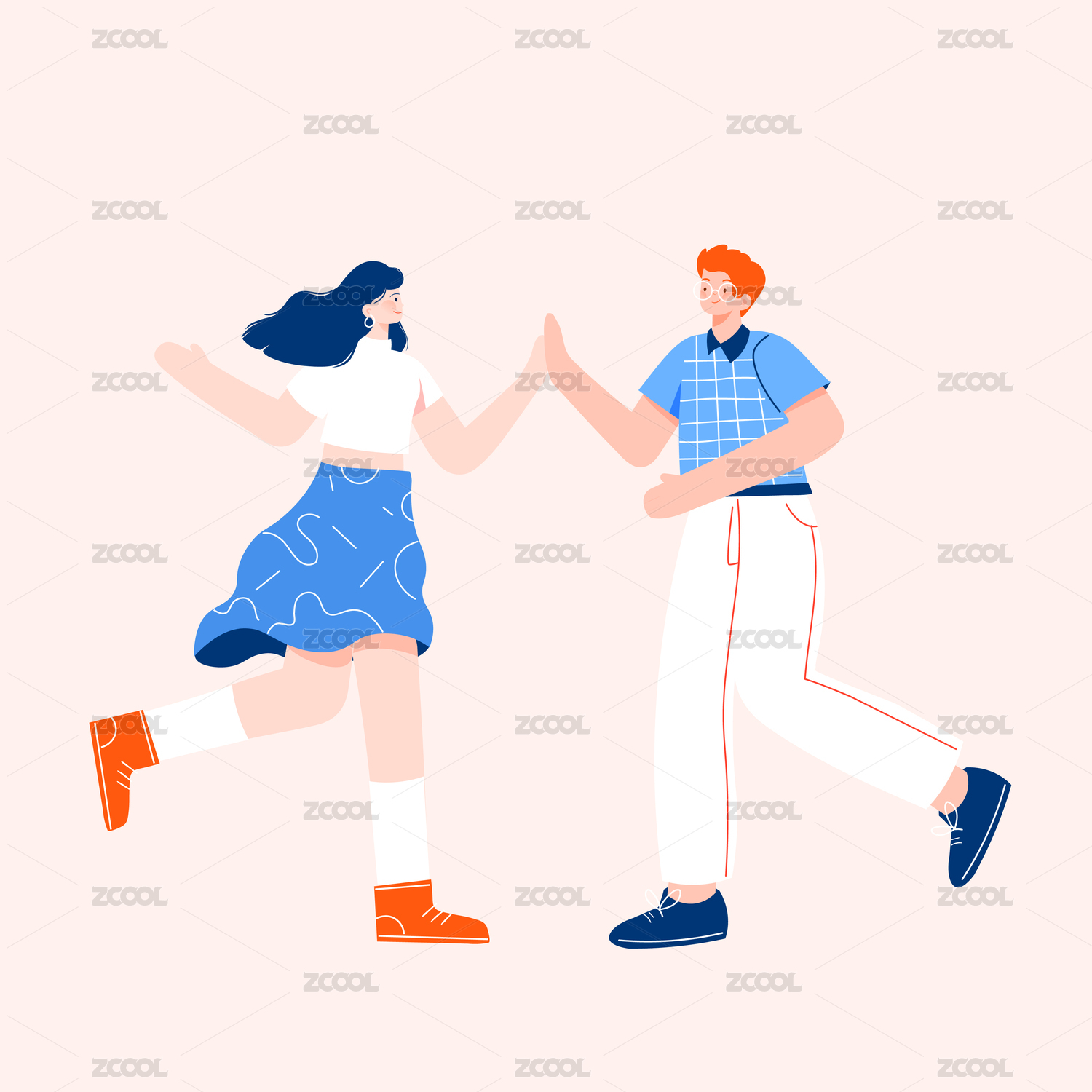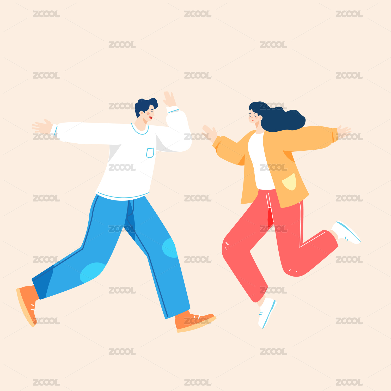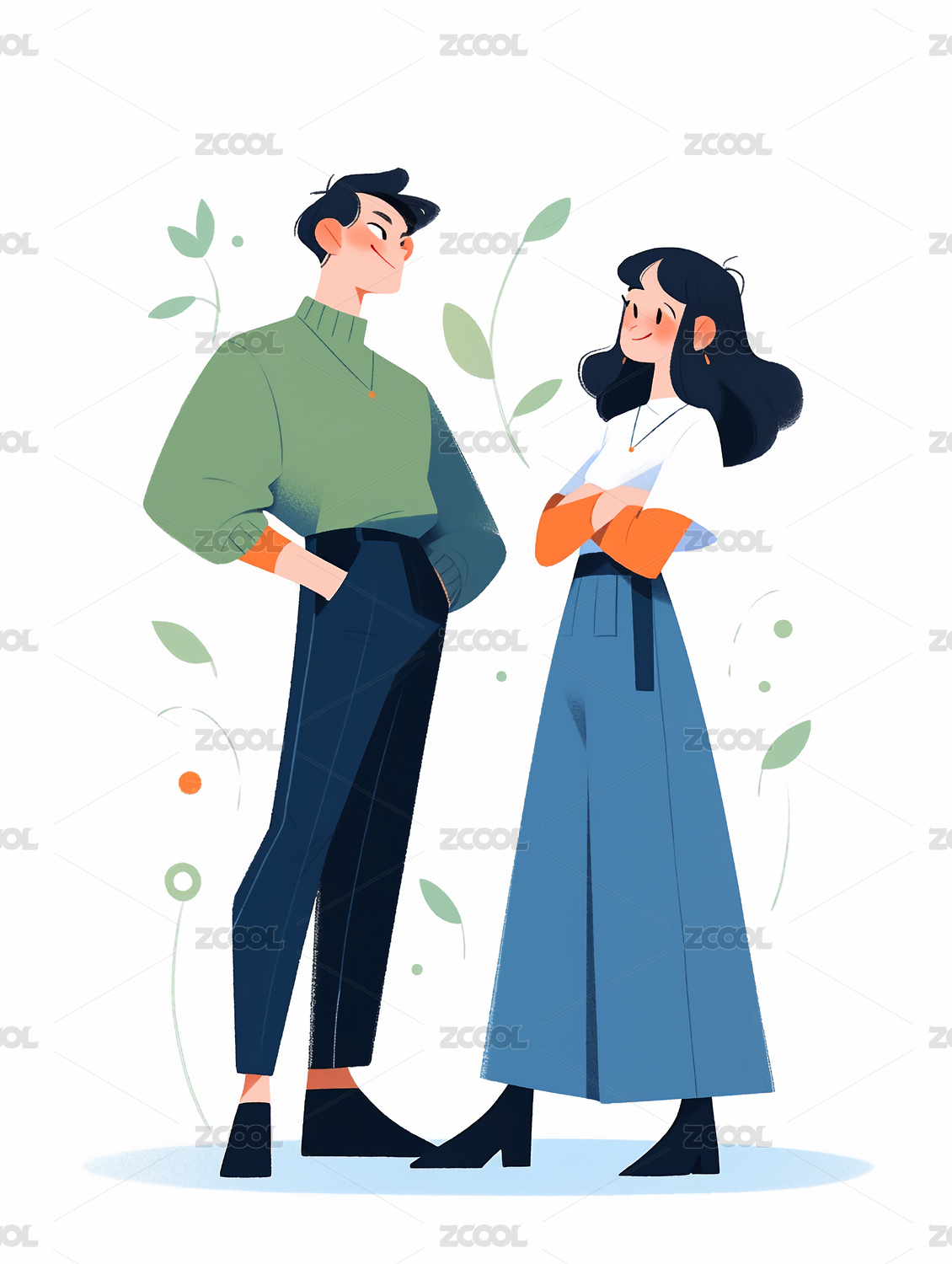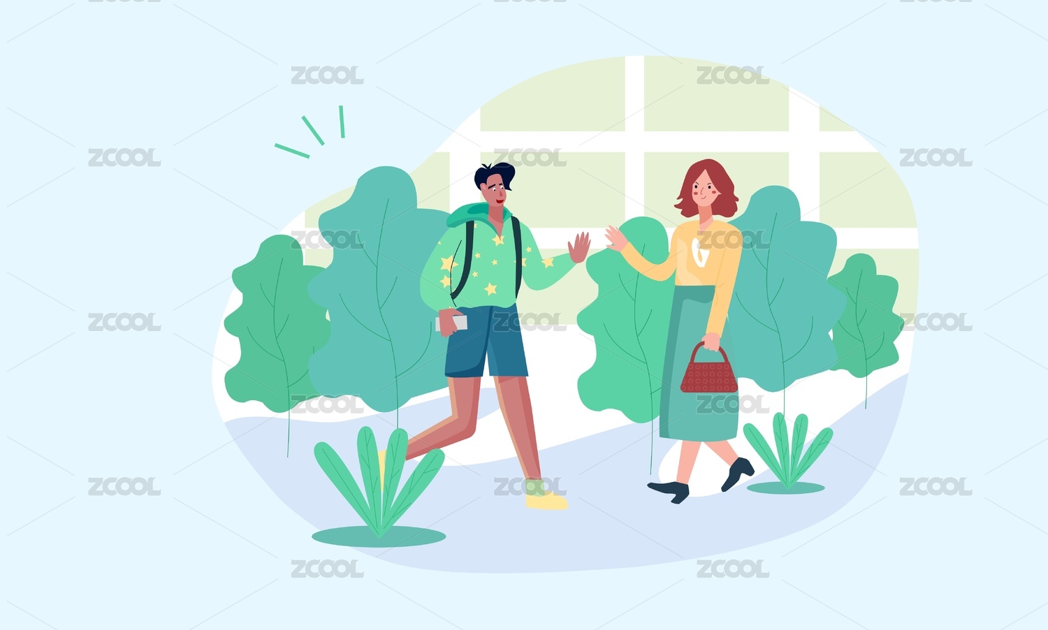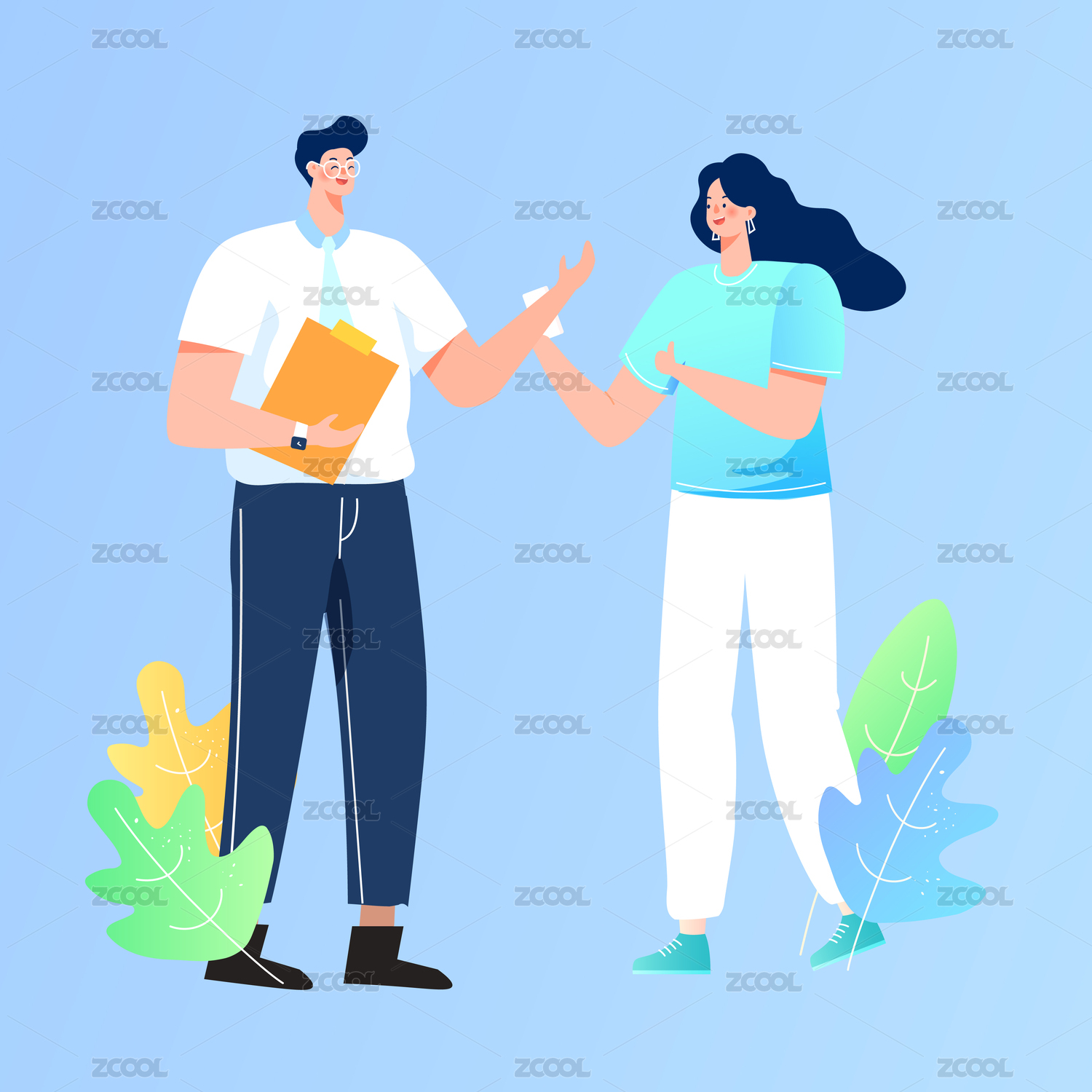 朋友,插画,交流,聊天,问候,见面,男人,女人,两个人