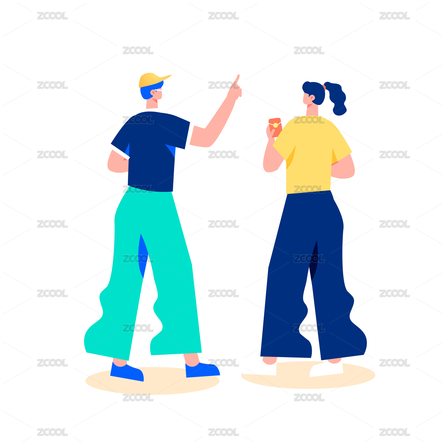 情侣牵手背影矢量插画