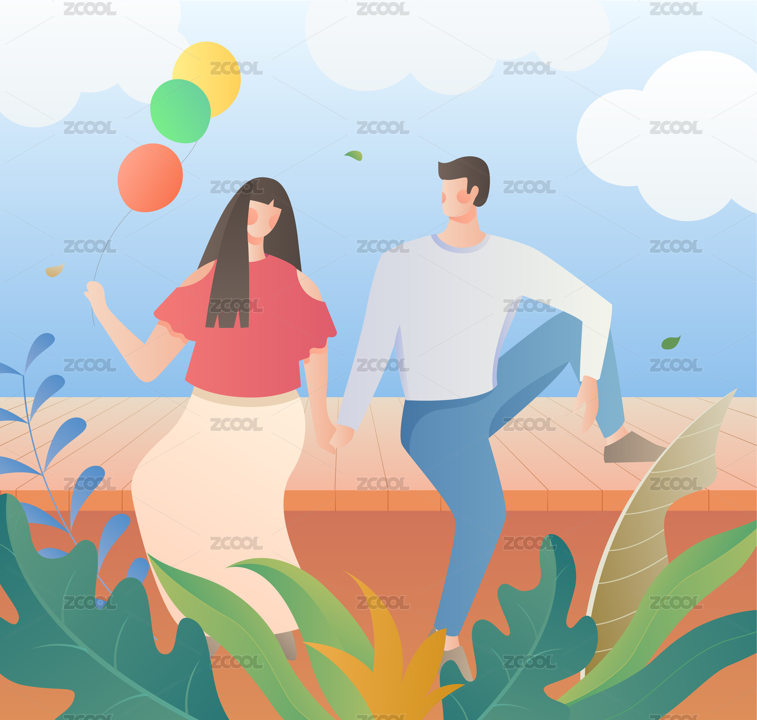 情人节情侣牵手矢量插画