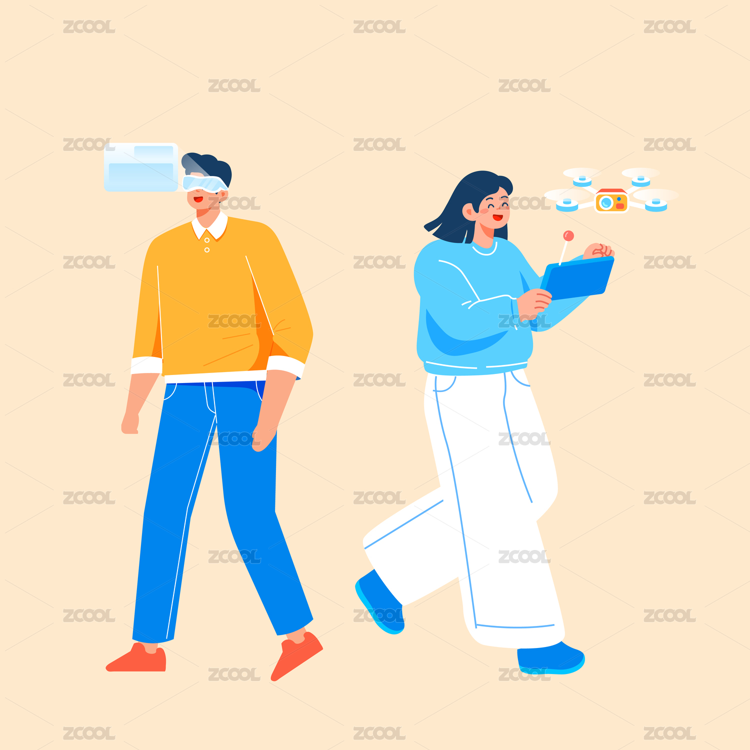 商务科技情侣矢量插画
