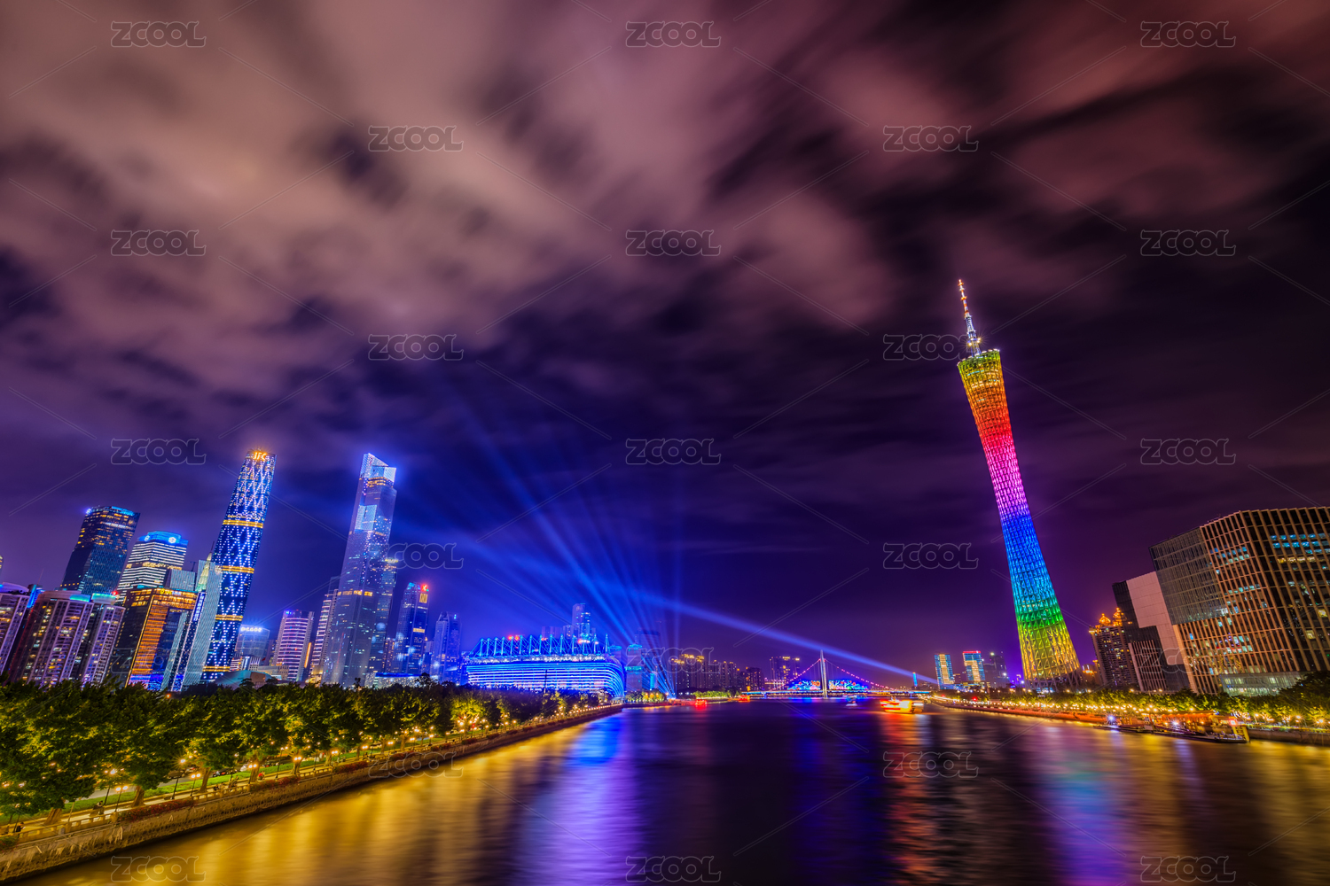 广州塔小蛮腰和广州CBD楼宇的夜景