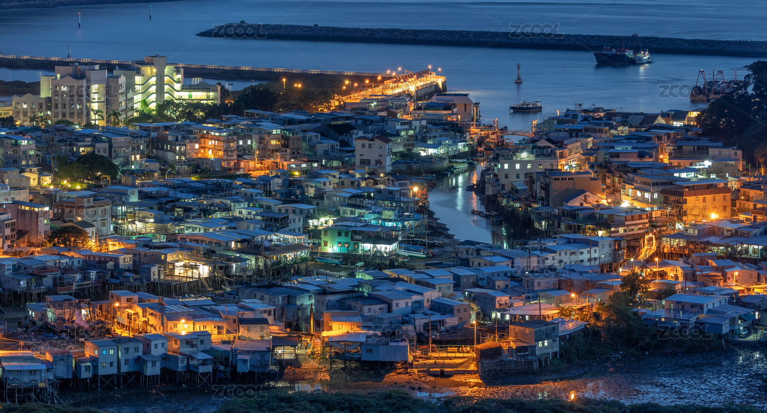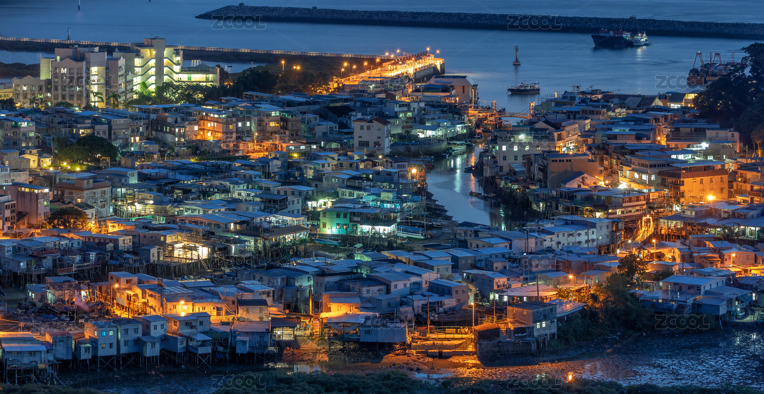 中国,香港,大澳渔村,渔村,夜景,夜晚,晚,城市景观,渔业,农村