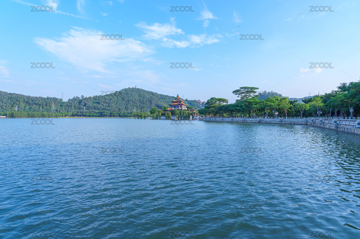 佛山顺峰山公园青云湖与青龙阁中式建筑