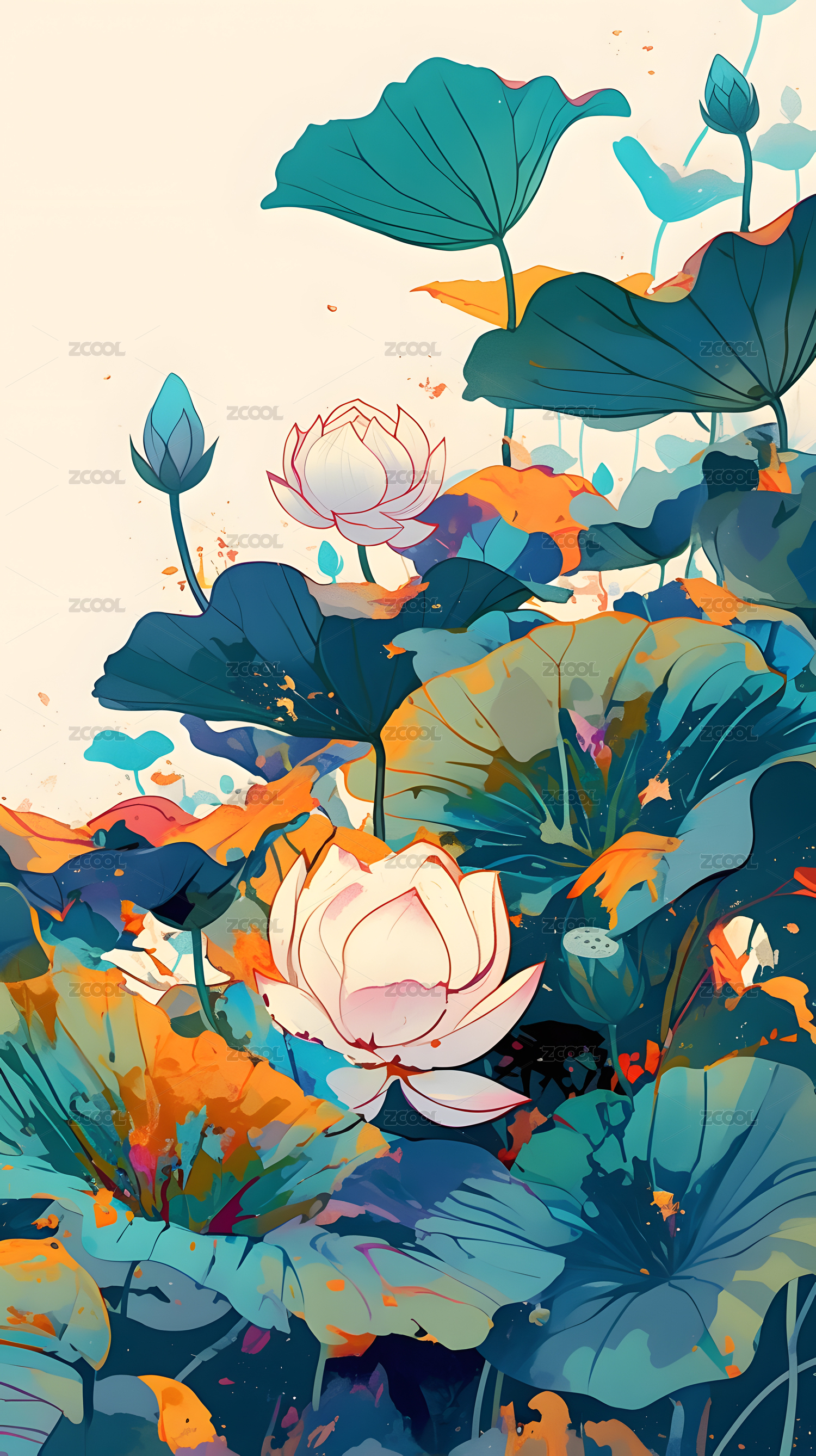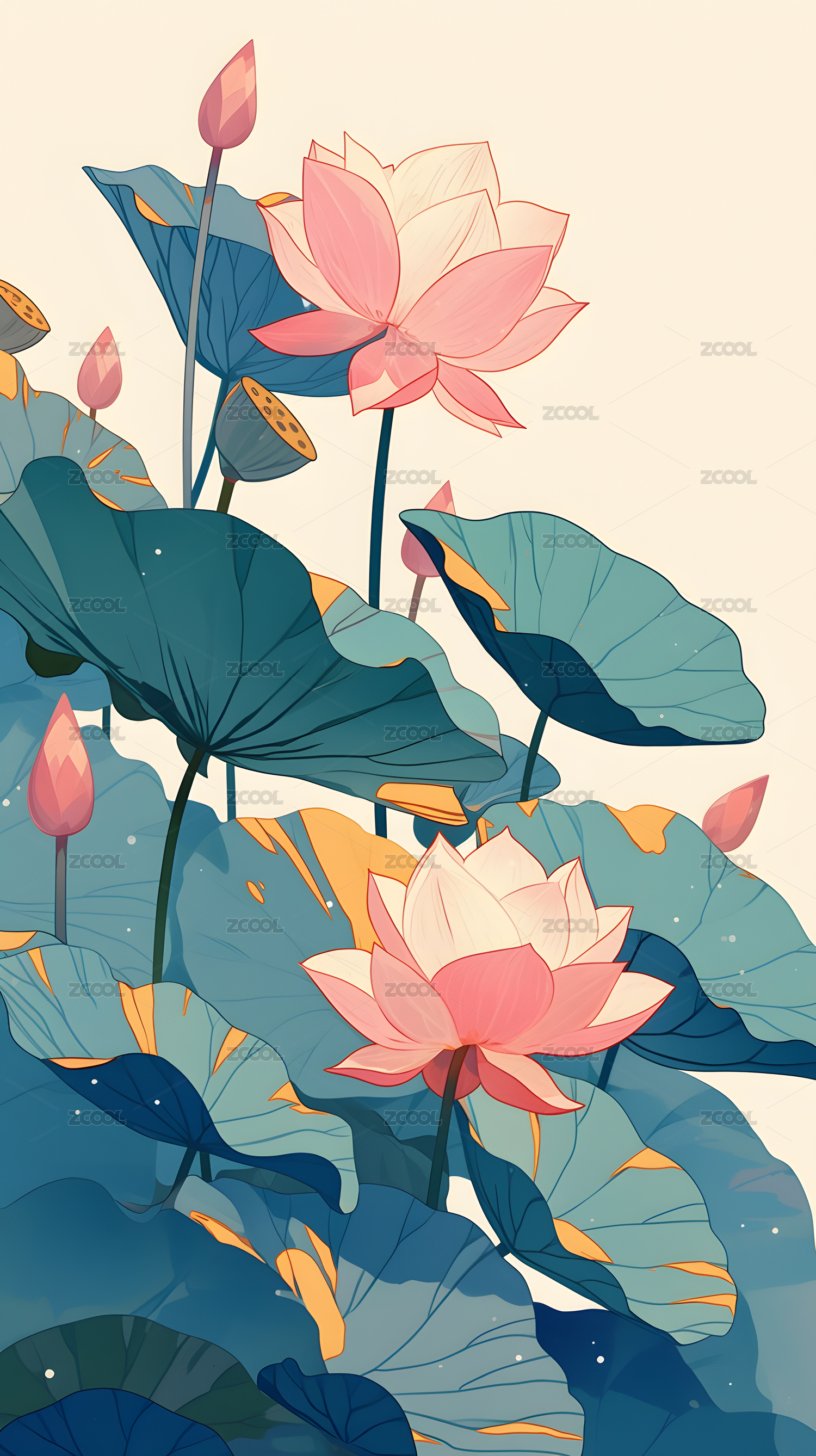 插画,背景,中式,国潮,国风,简约,红色,荷花,莲花,花