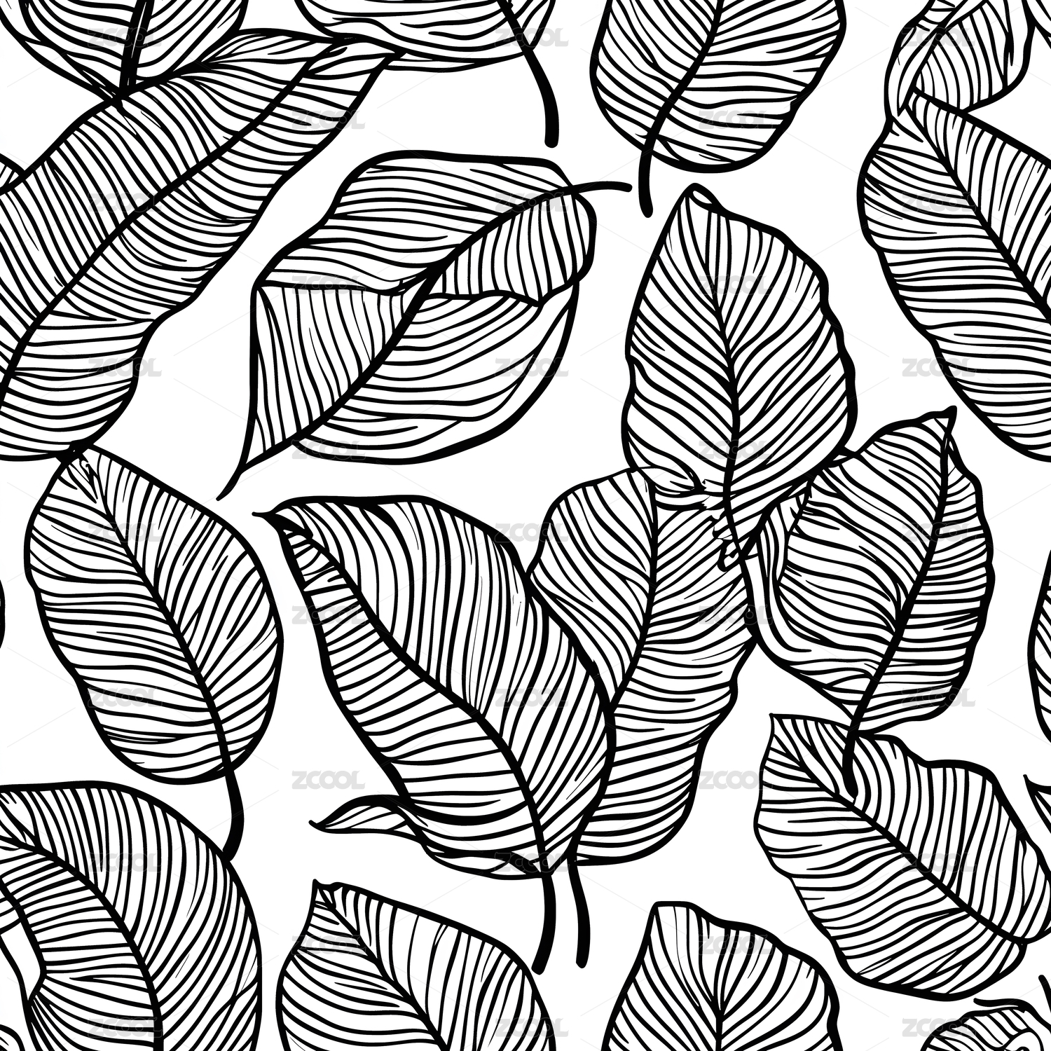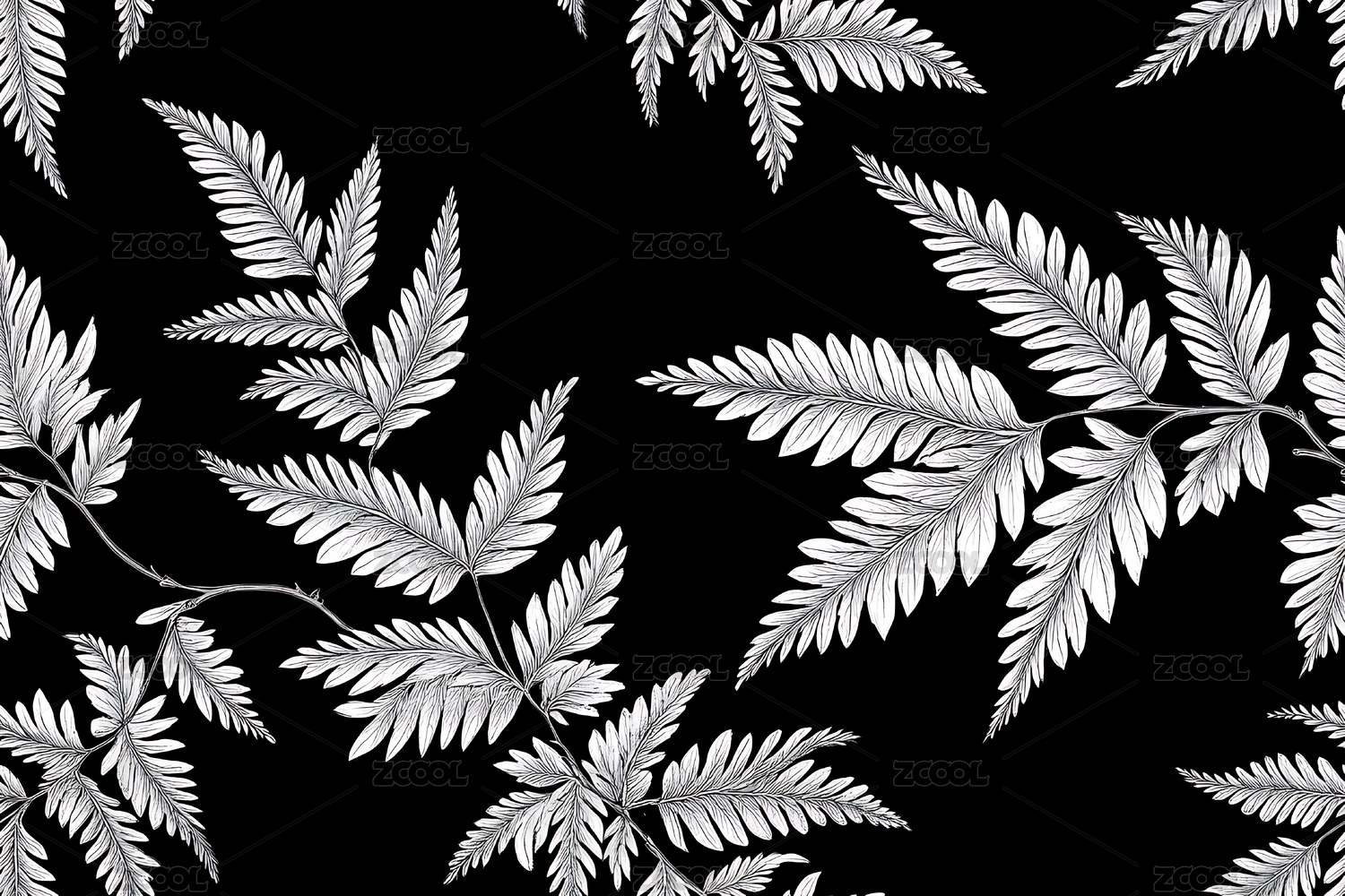 无缝黑白色叶子图案