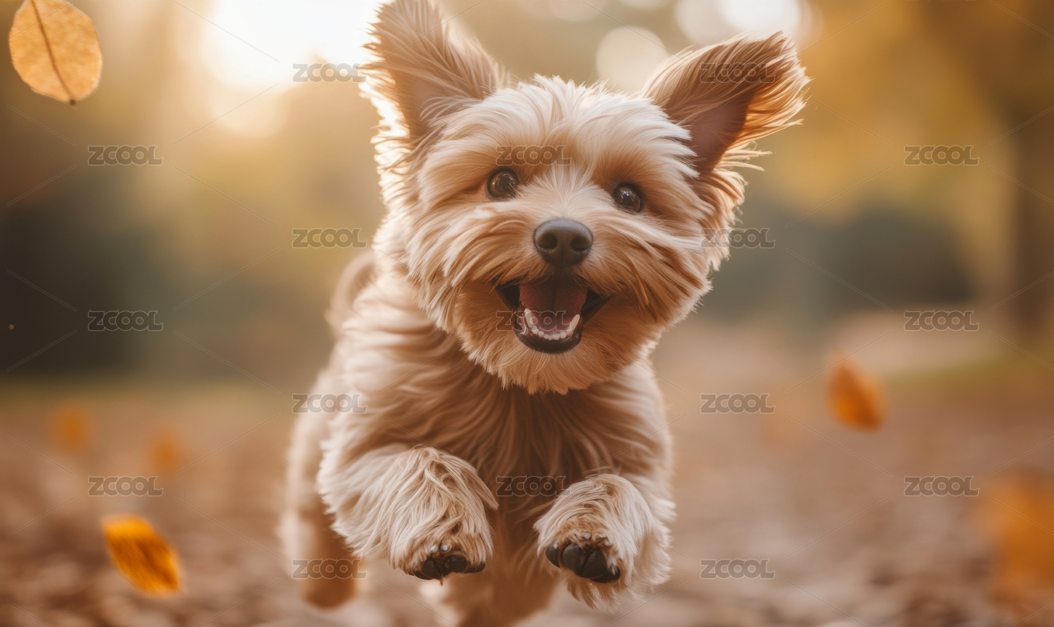 奔跑跳跃飞跃的可爱小狗金毛幼犬