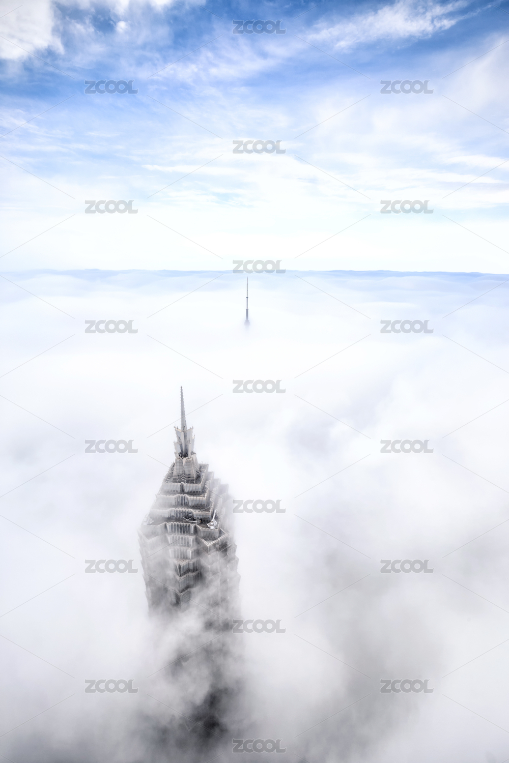 河南郑州地标建筑中原福塔秋季平流雾航拍