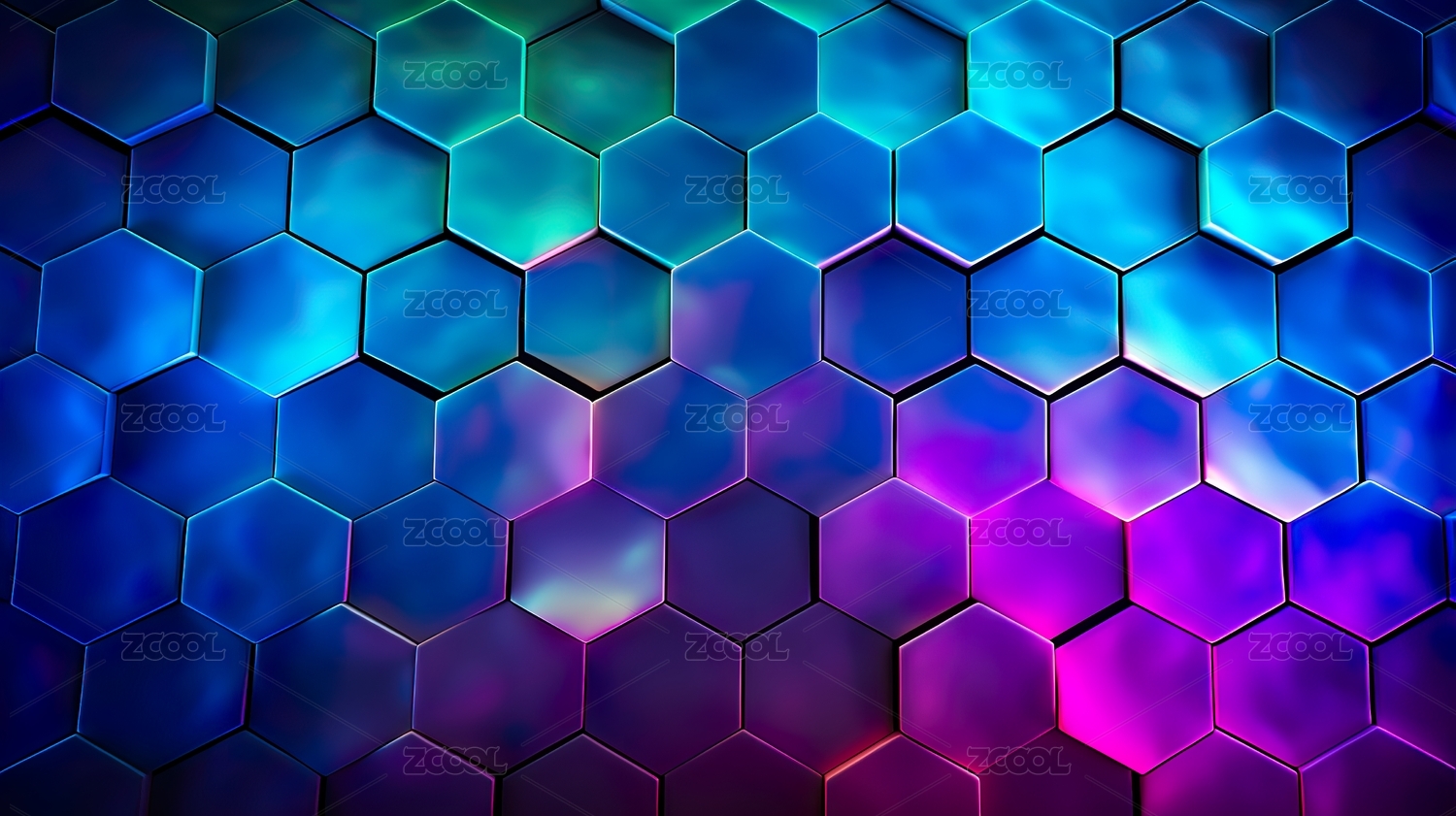 霓虹光效下的蜂窝状立体背景