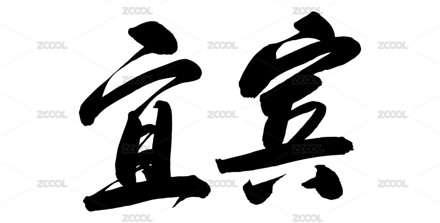 中国各大城市手写毛笔体矢量城市名-宜宾