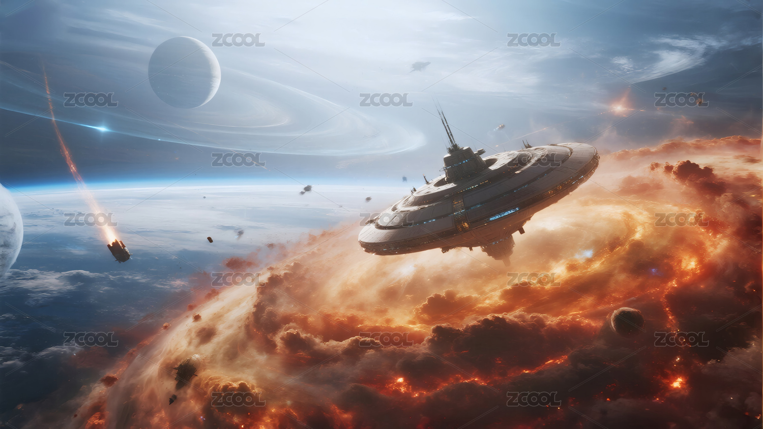 宇宙,航空,星空,行星,战斗,飞船,激光,攻击,火光,烟雾