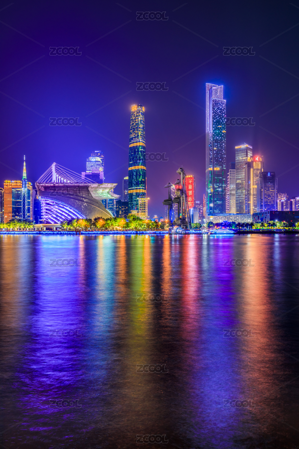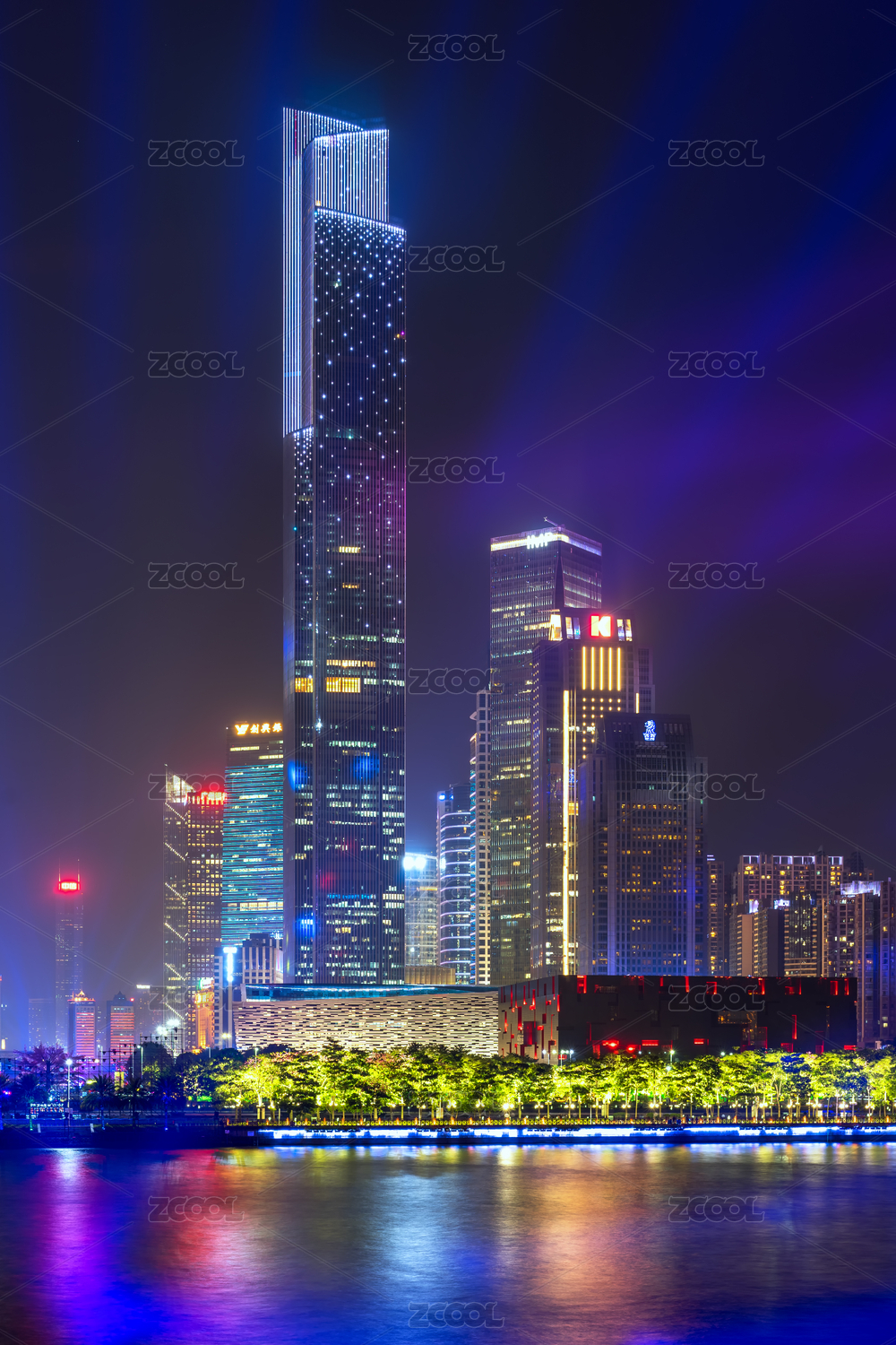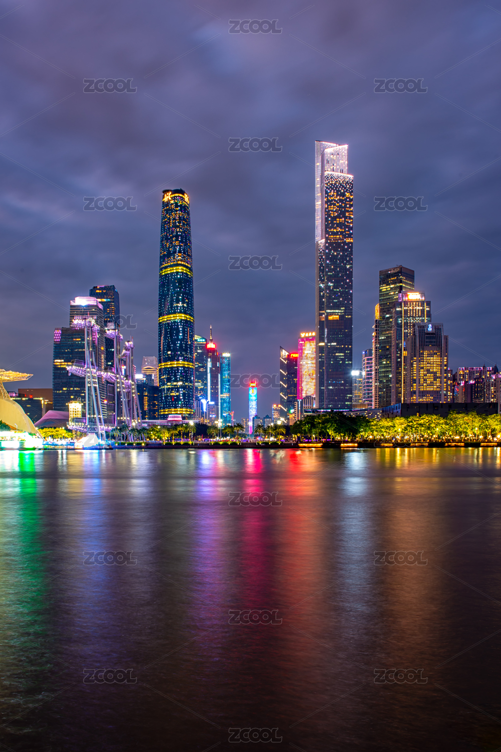广州珠江两岸广州塔东塔西塔建筑群天际线