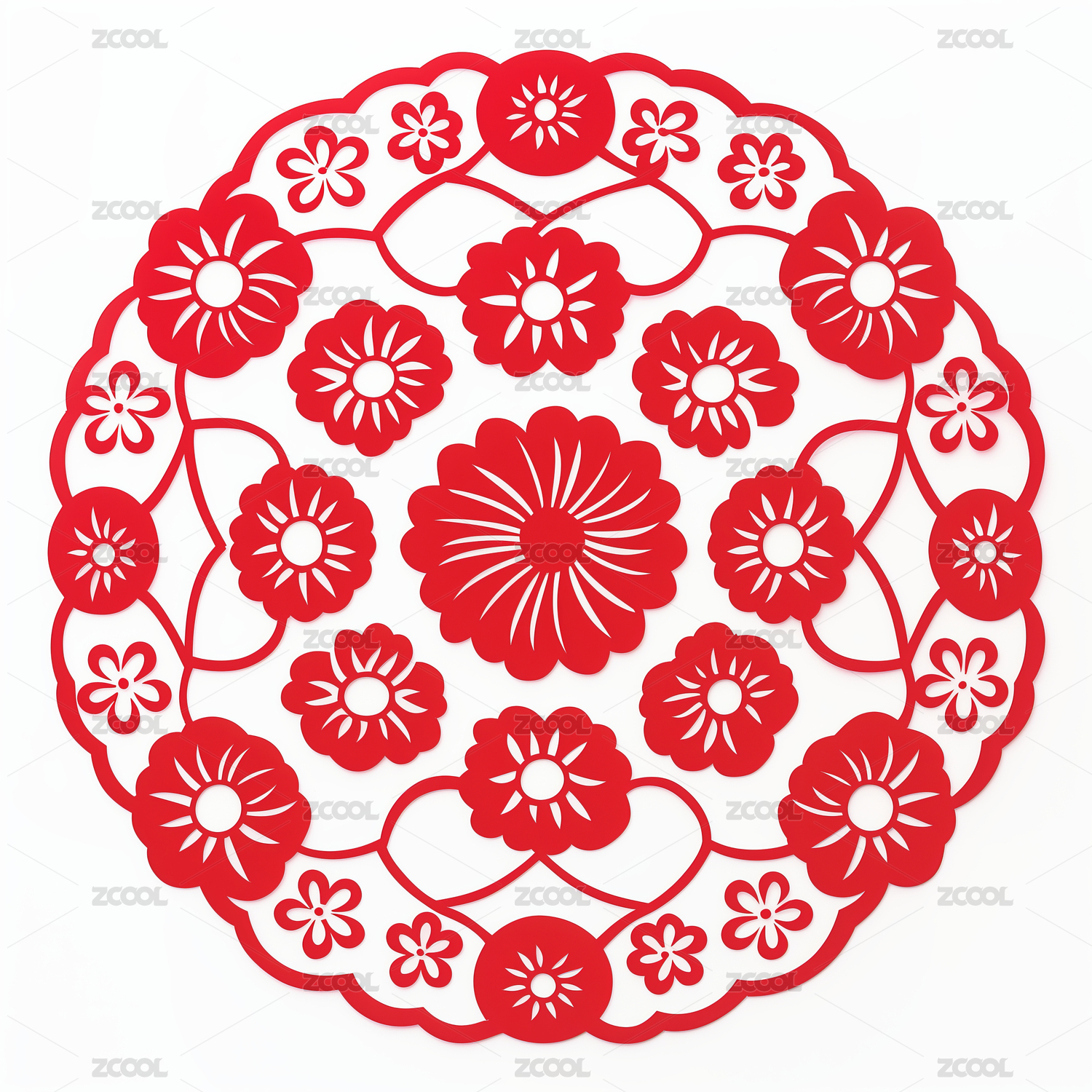 春节红色圆形花剪纸装饰元素