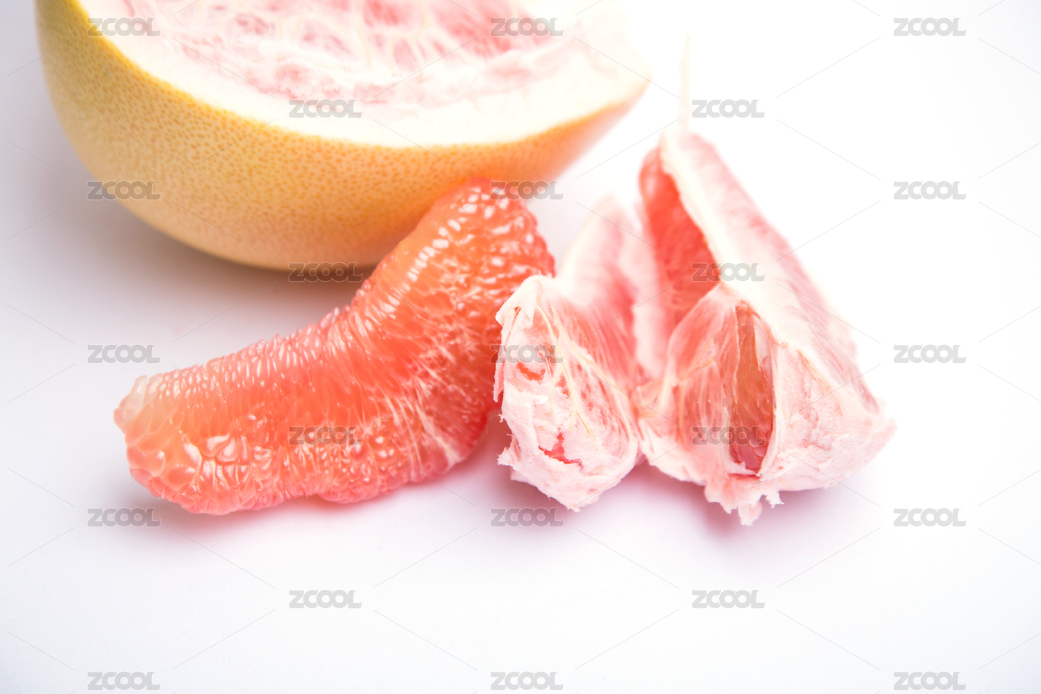 白底上放着红心柚子