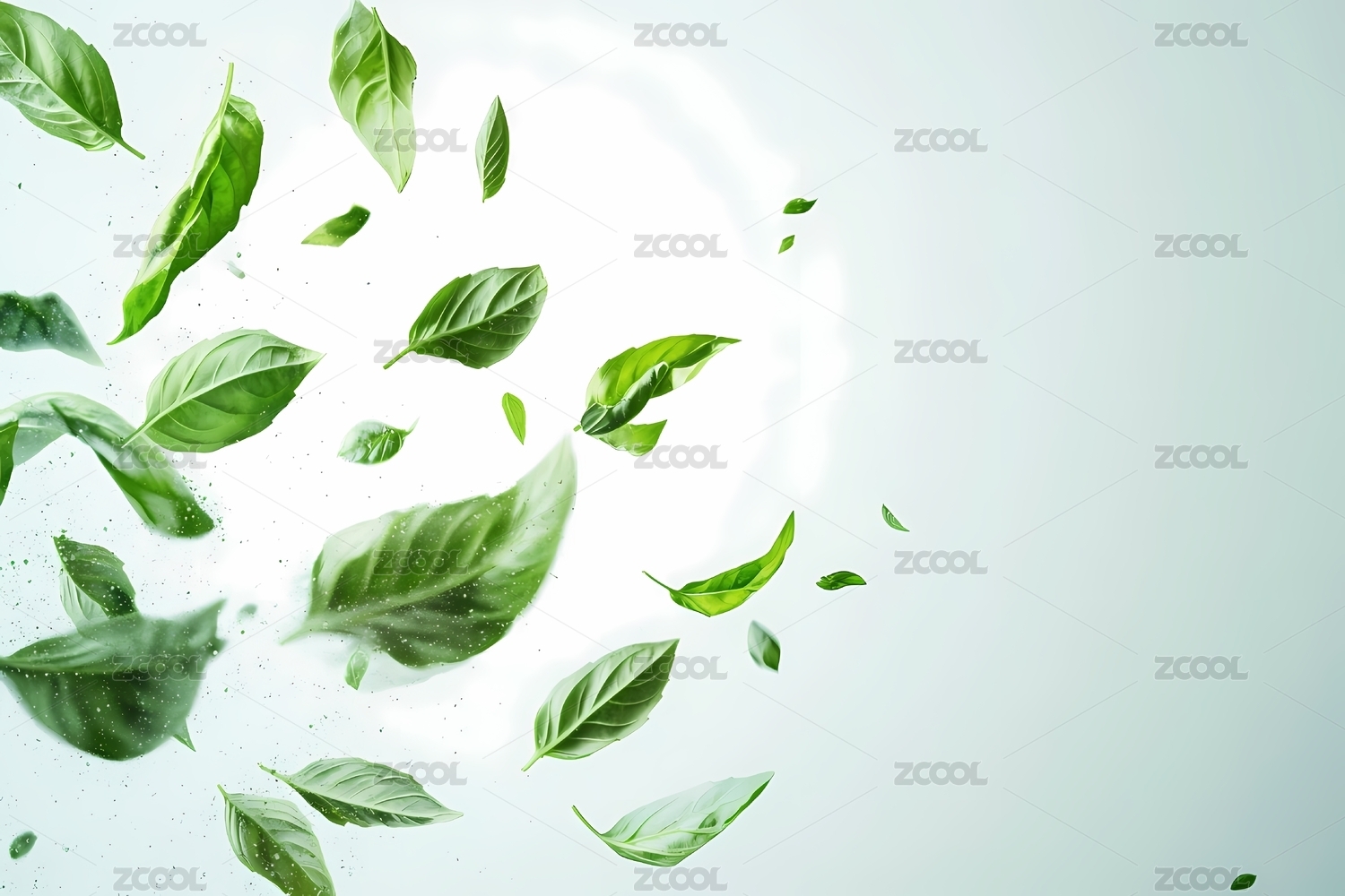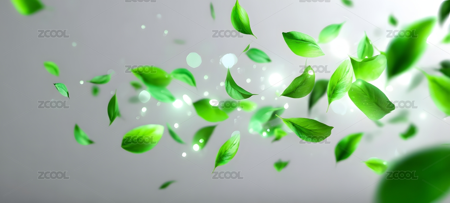 绿色叶片在空中轻盈飞舞