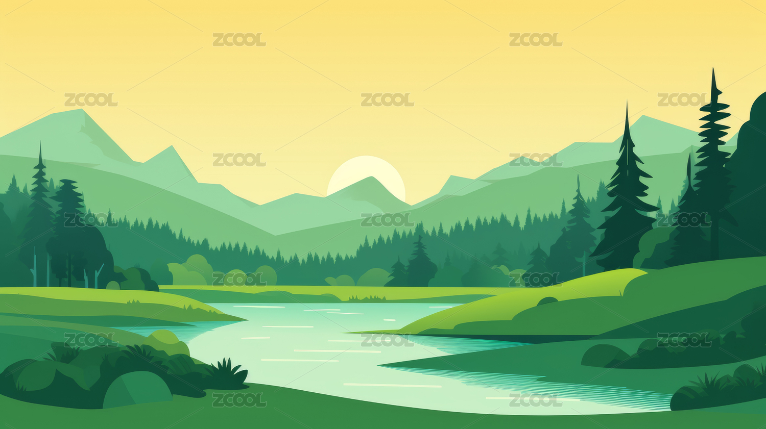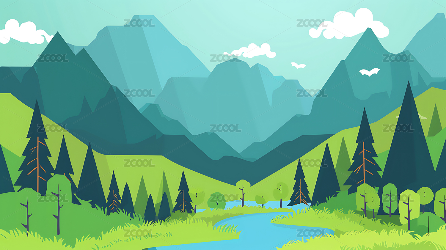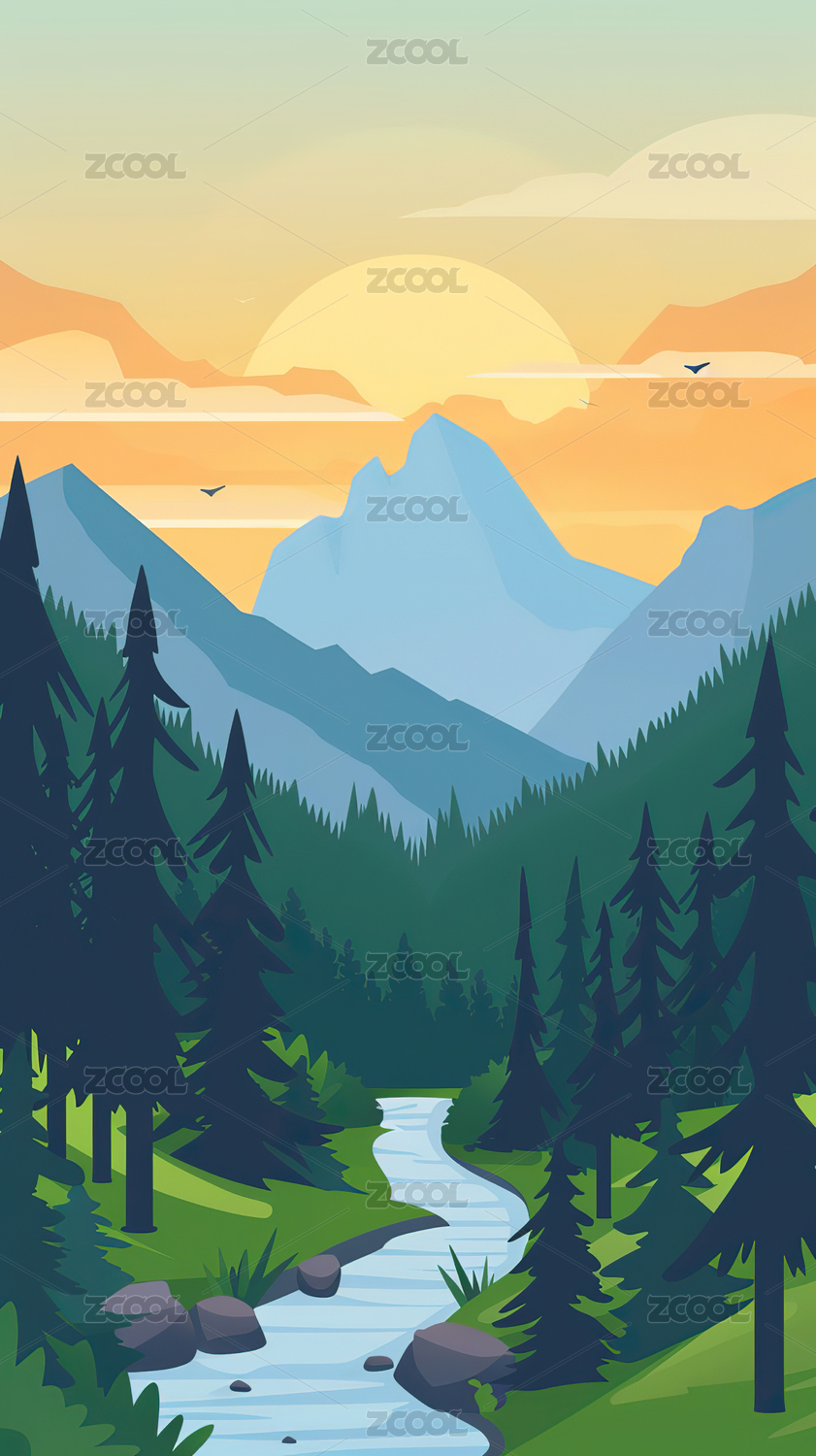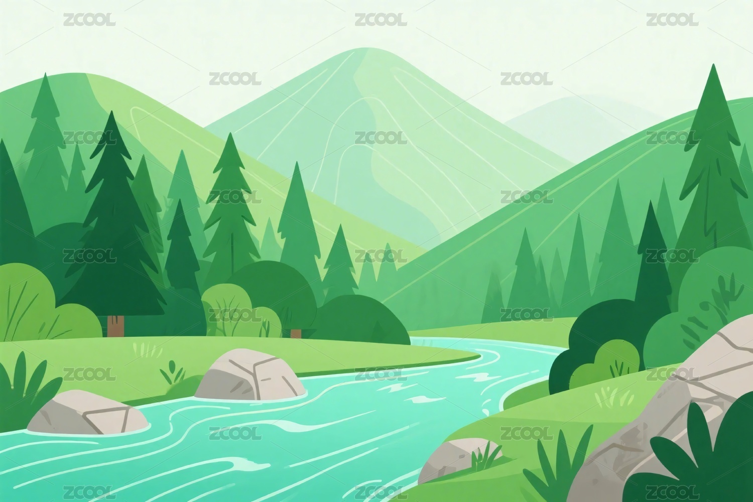 AIGC202404,简约,树木,河谷,山川,深山,河流,河水