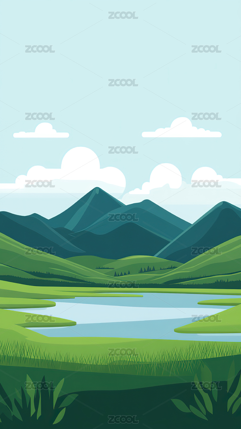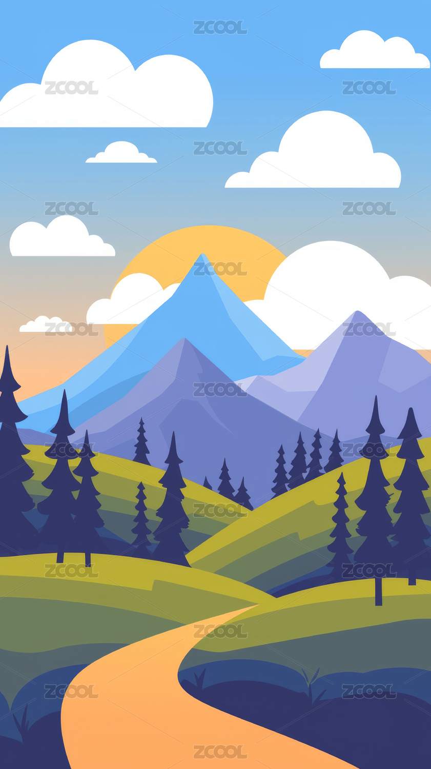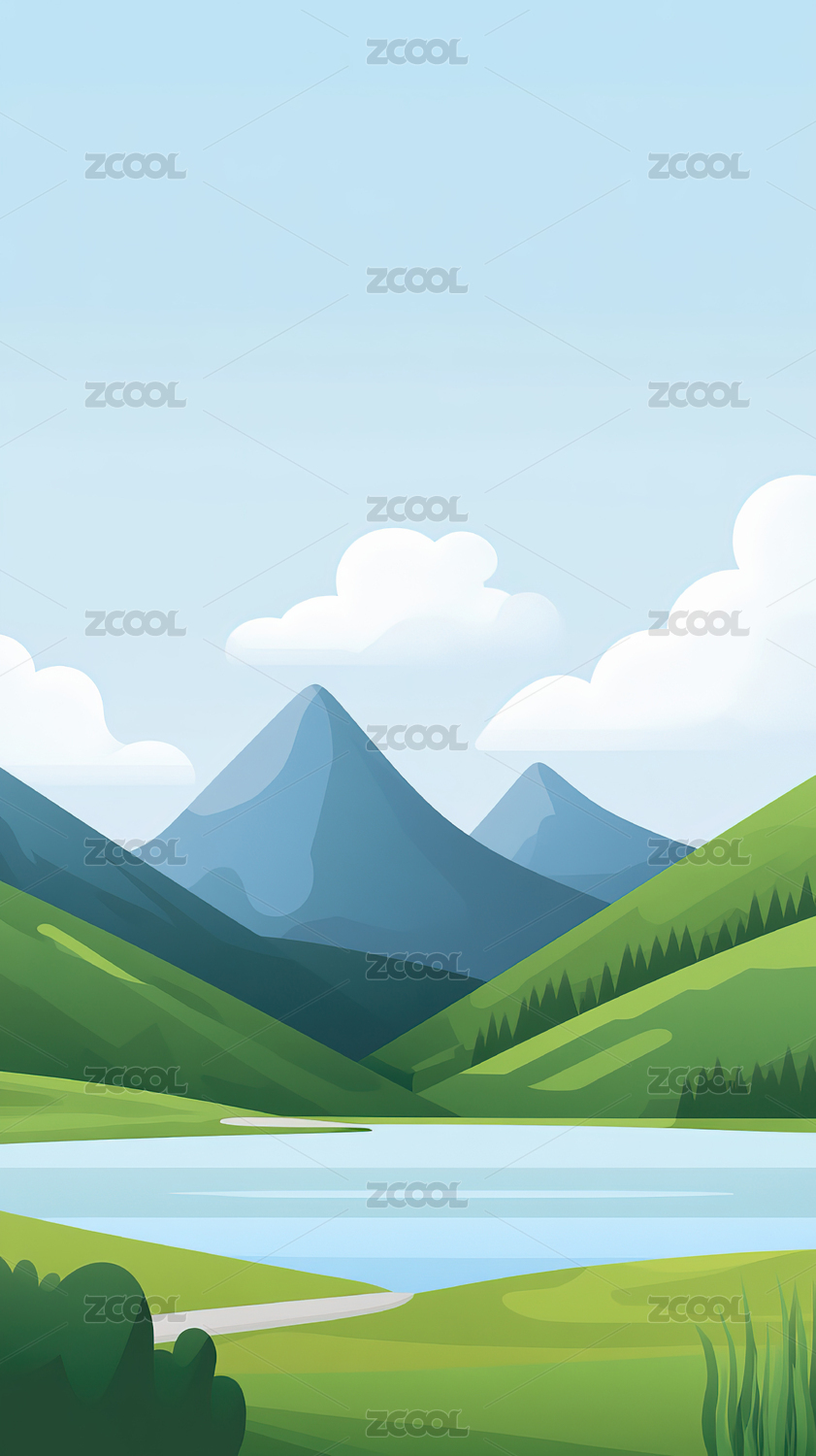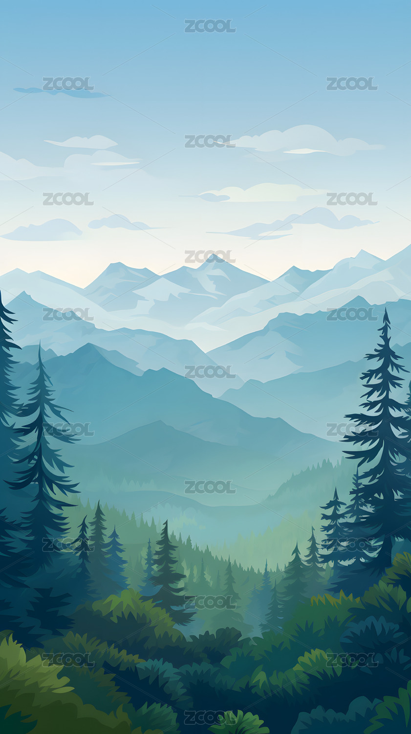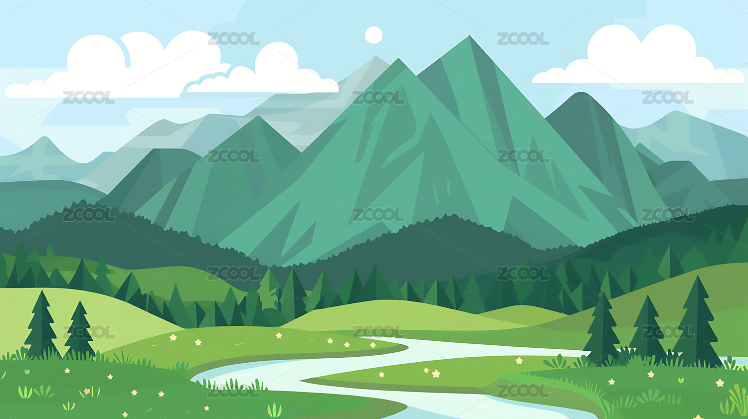 AIGC202404,简约,树木,河谷,山川,深山,河流,河水