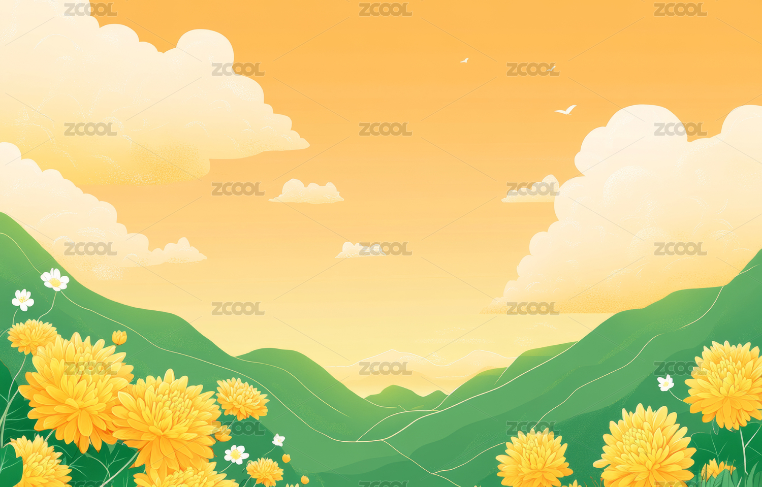 手绘,插画,花朵,AIGC202406,背景,壁纸,花,黄色花,天空,风景