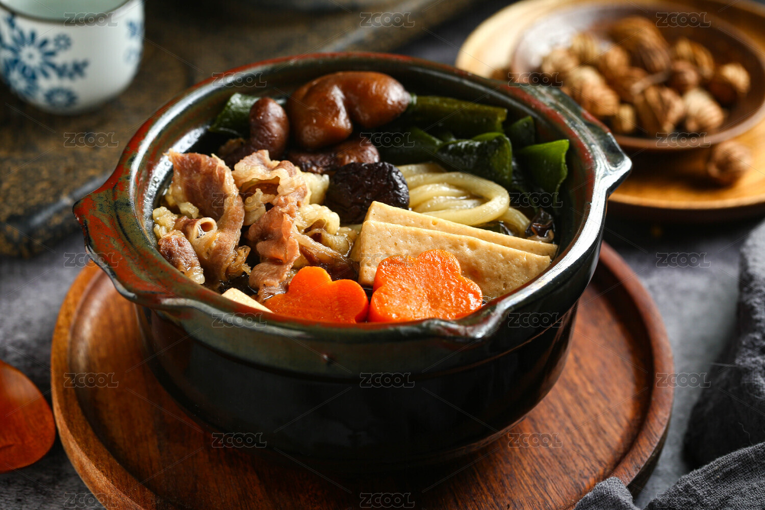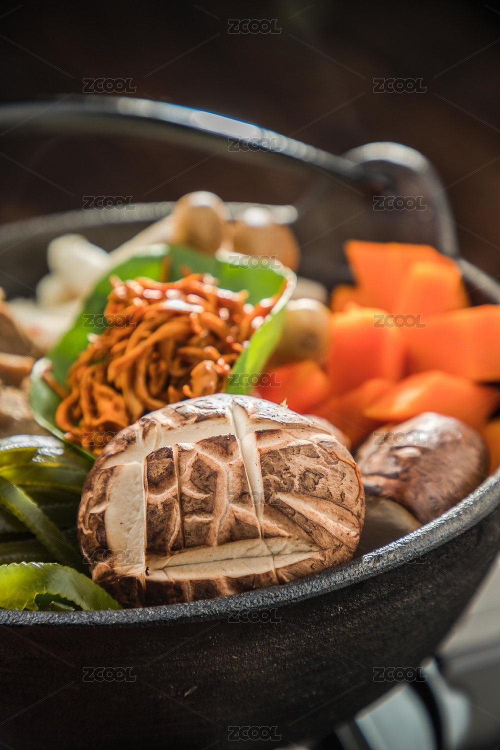 亚洲美食,小菜,蔬菜,膳食,锅仔,花菇,蘑菇,牛腩,火锅,黑铁锅