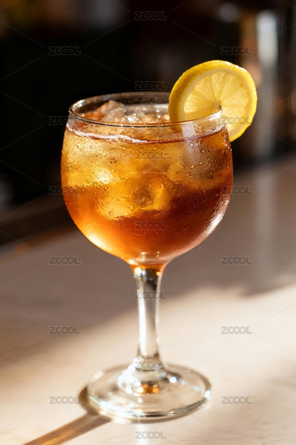 金色鸡尾酒在昏暗酒吧中
