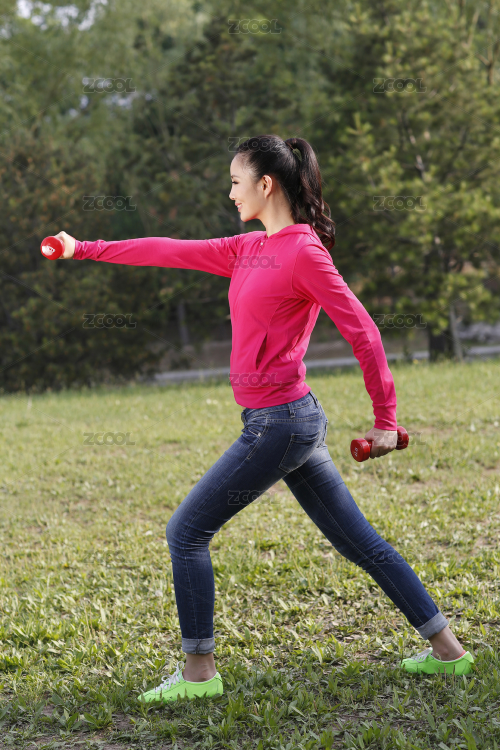 人,户外,20到24岁,性格开朗,触摸拿着哑铃,健康的生活方式,锻炼,运动服装,福利,健美操