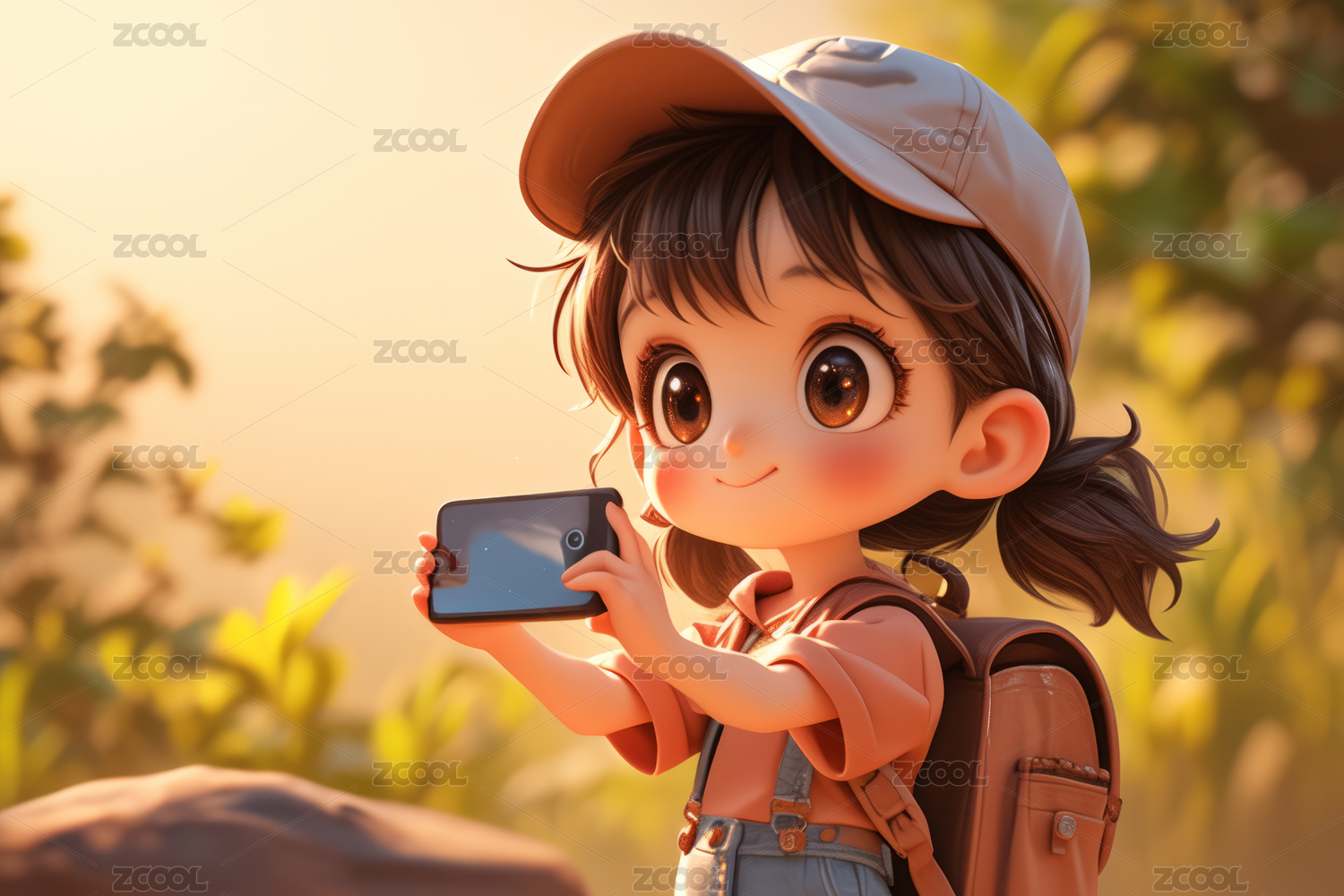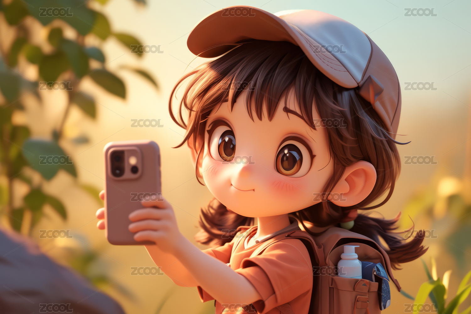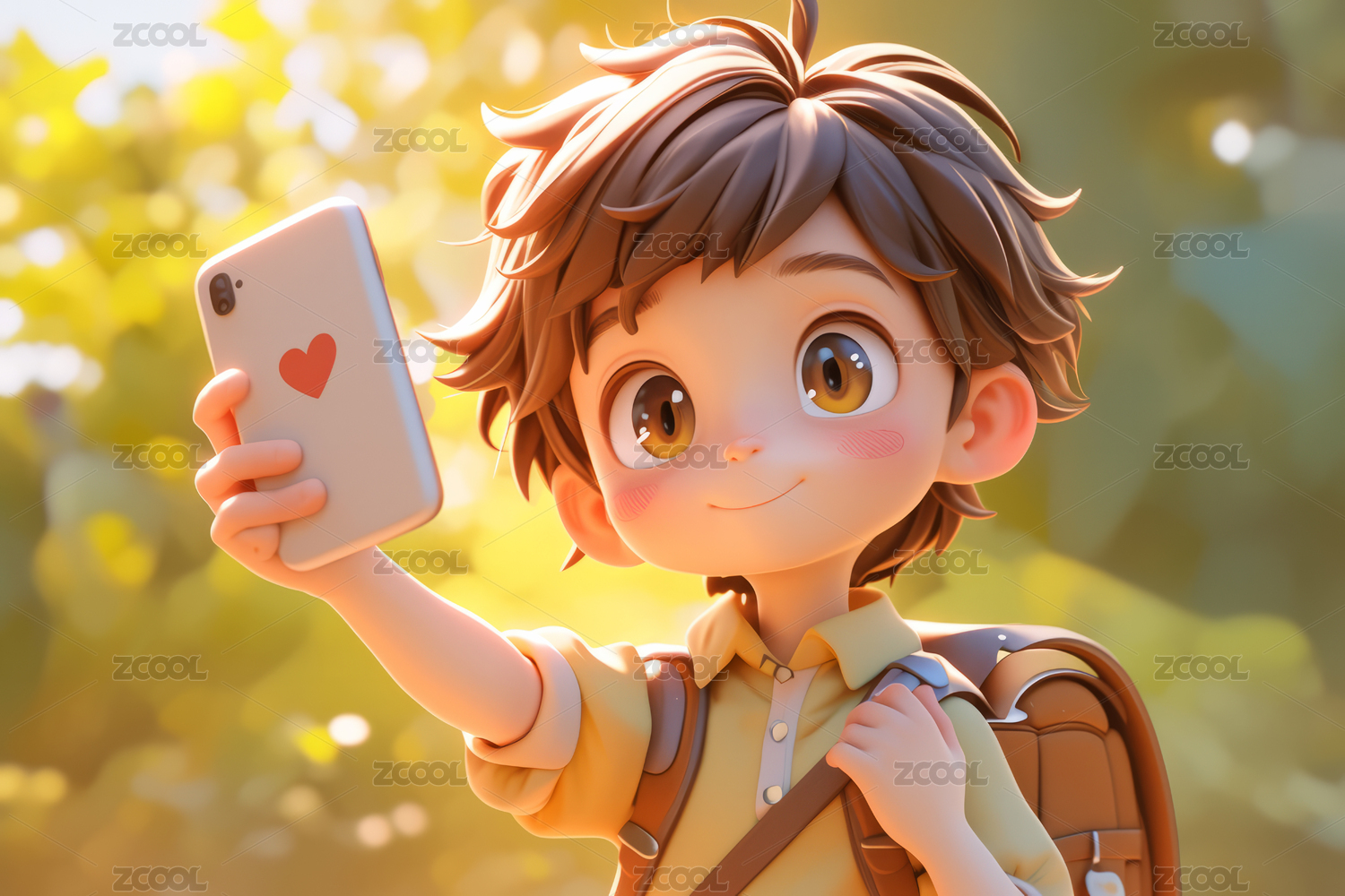 正在玩手机自拍的可爱3D男孩
