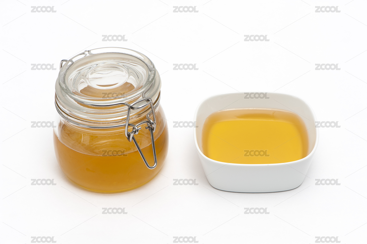 蜂蜜,玻璃罐,甜品,特写,室内,影棚拍摄,白背景,色彩鲜艳,营养食品,健康食品