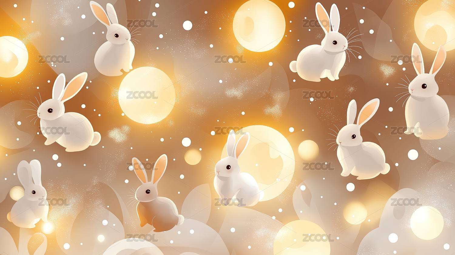 AIGC202403,中秋节,月亮,兔子,插画,节日,树,花,植物,庆祝