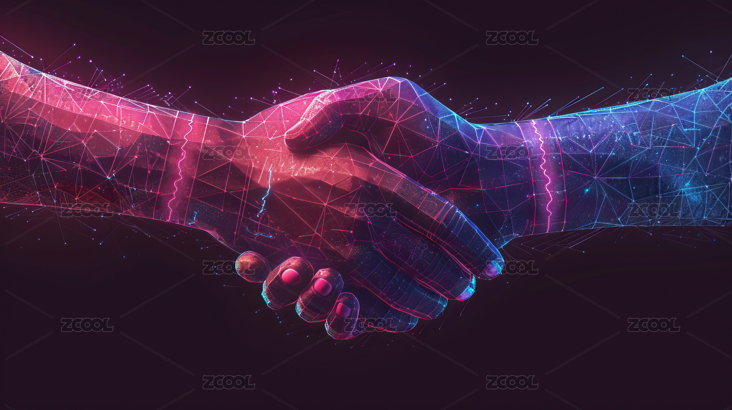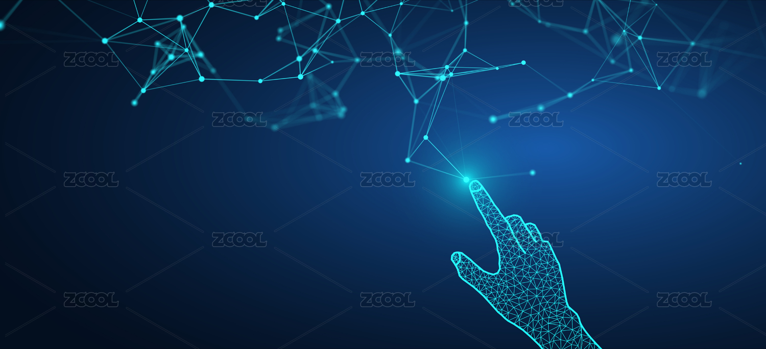 虚拟的手指点击线条连接而成的网络,科技感插图。