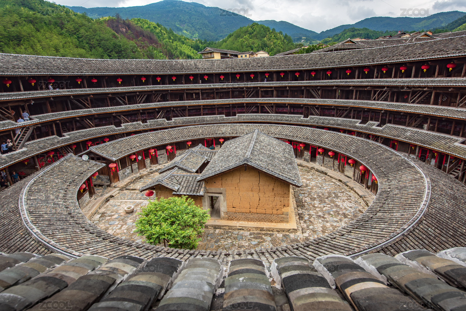 福建,龙岩,永定区,福建土楼,土楼,永定土楼,圆楼,圆形,古建筑,瓦