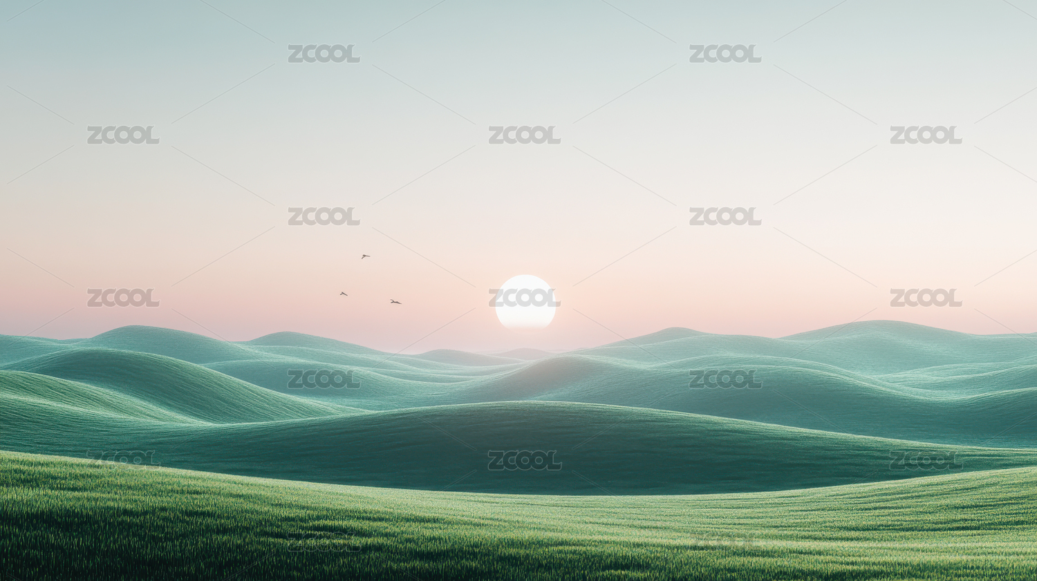 日出时的绿色波浪山