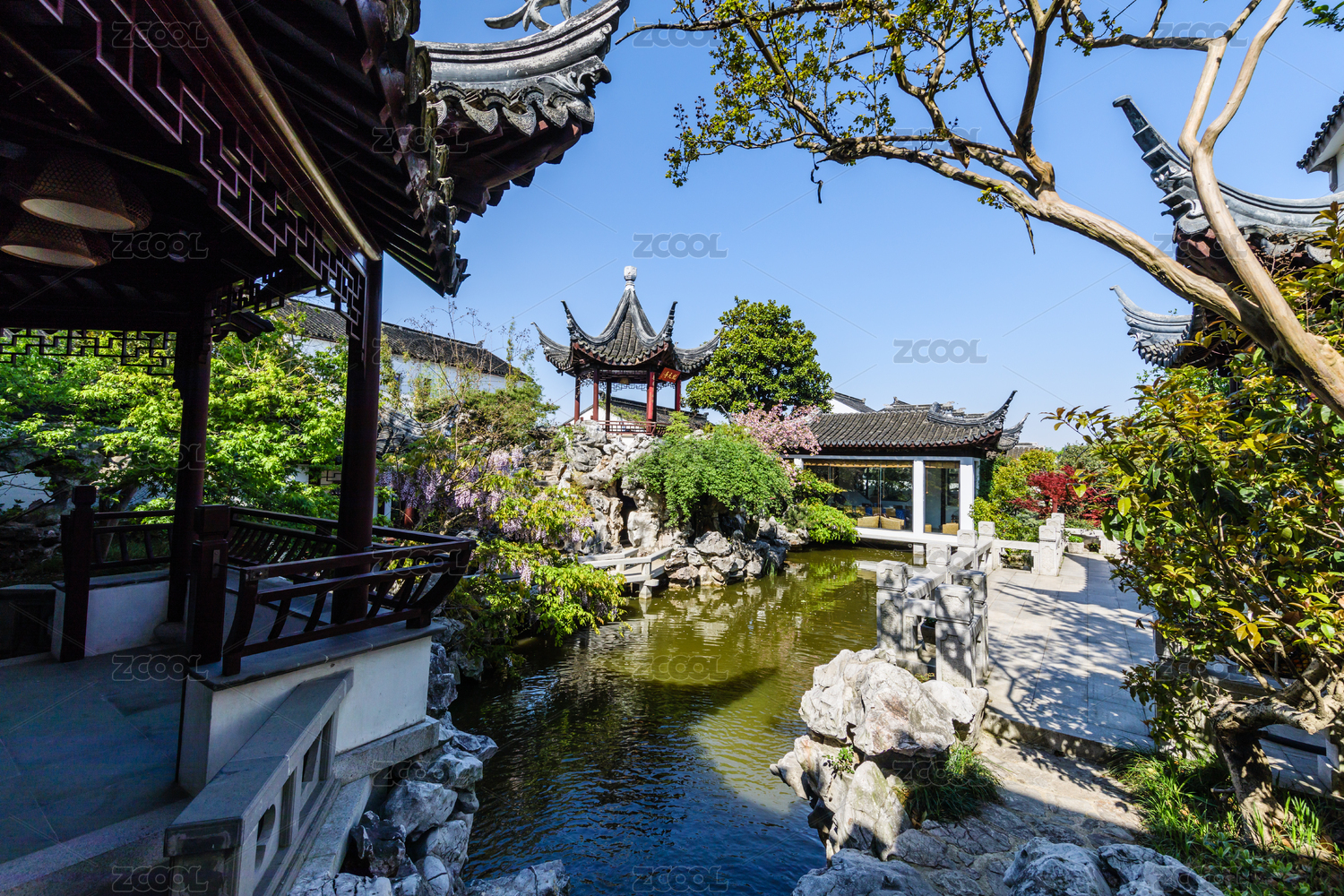 中国苏州同里古典园林亭台楼阁假山白天高清大图