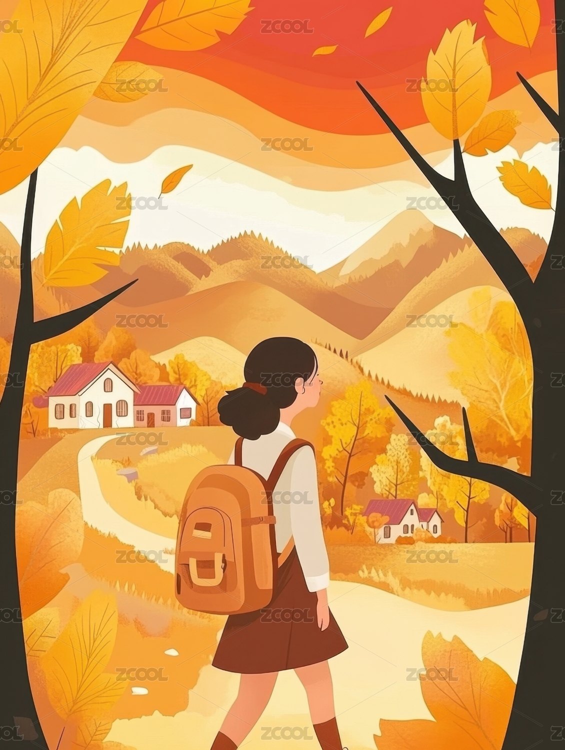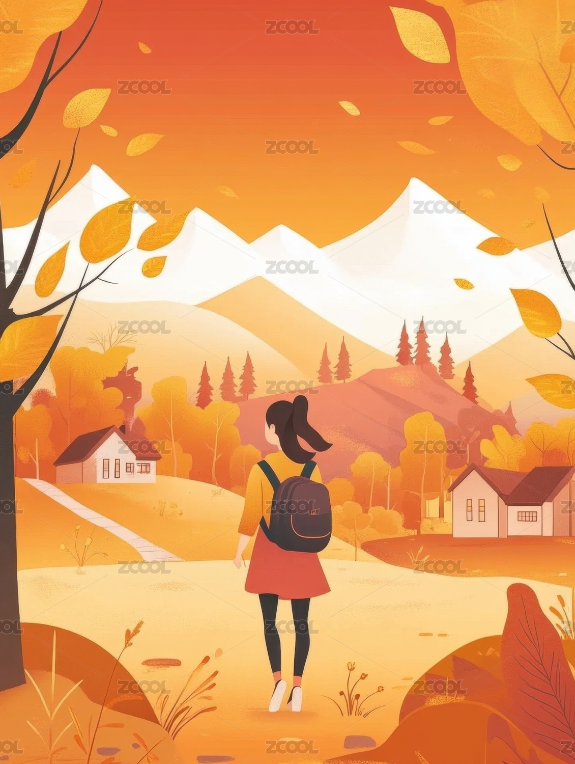 立秋节气户外旅行自然风景处暑卡通唯美插画
