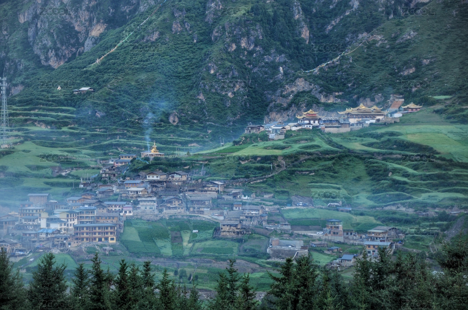 甘肃省甘南州迭部县扎尕那村庄云雾