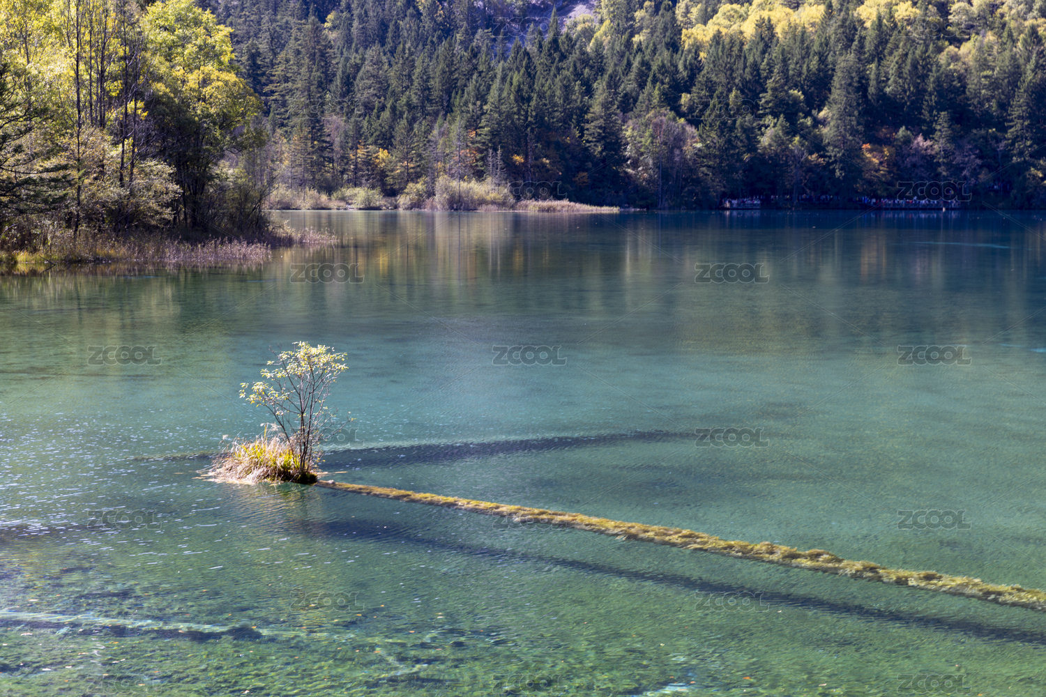 九寨沟,五花海,四川,湖底沉木,海子,阿坝州,秋季,秋天,黄叶