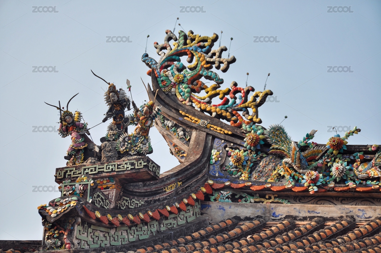 中国广州陈家祠岭南建筑屋顶灰塑陶塑