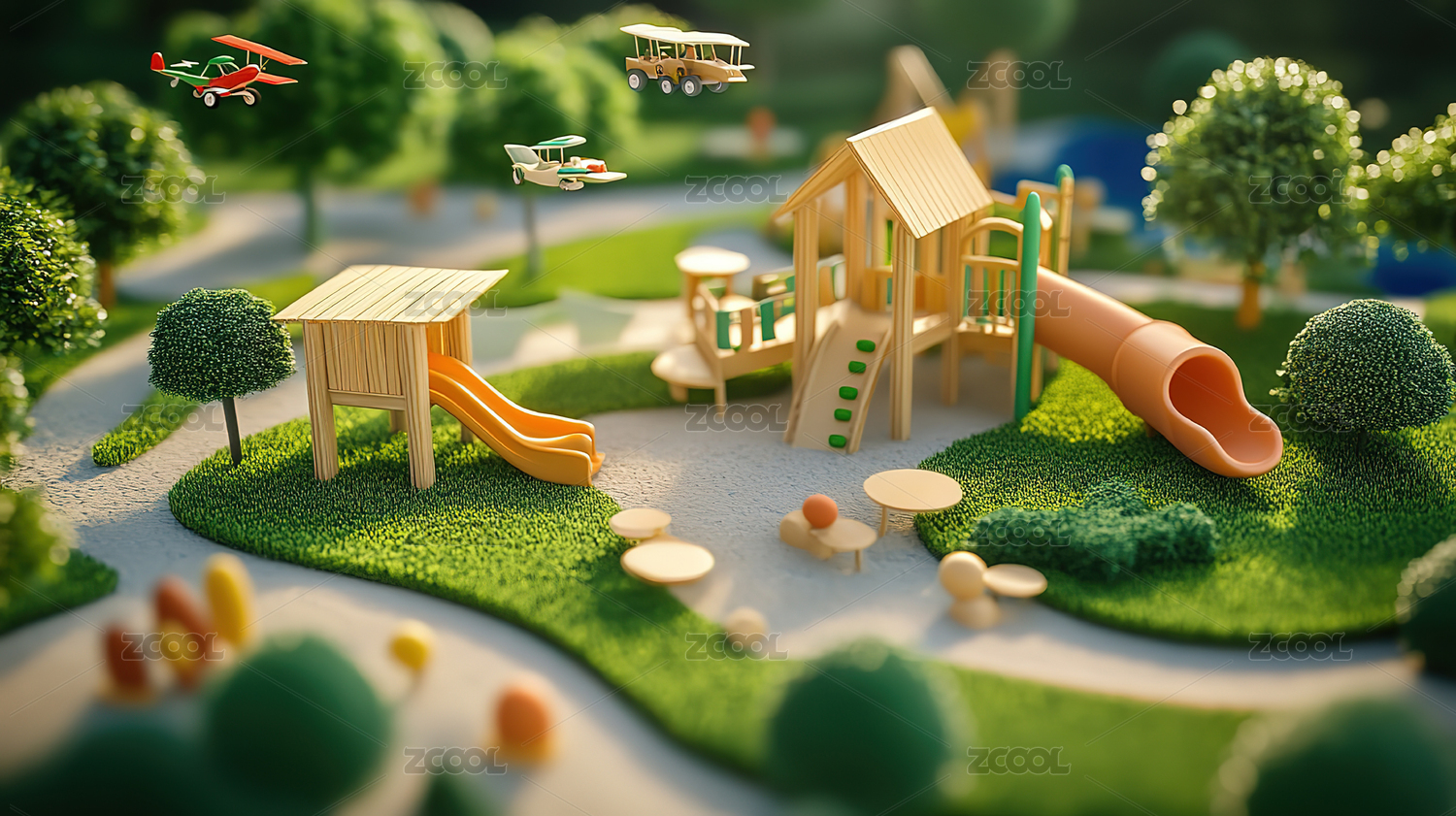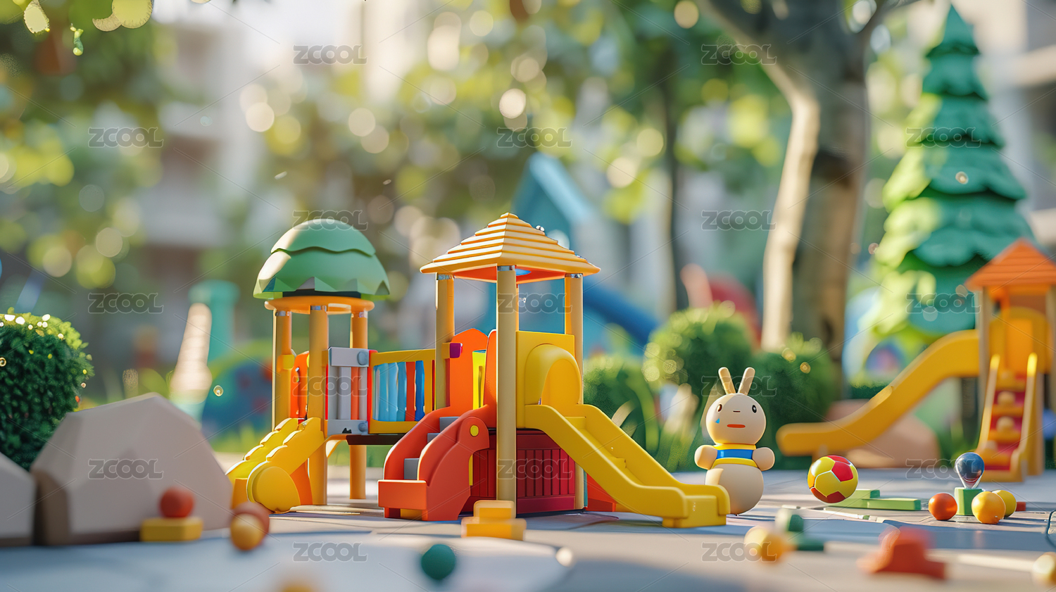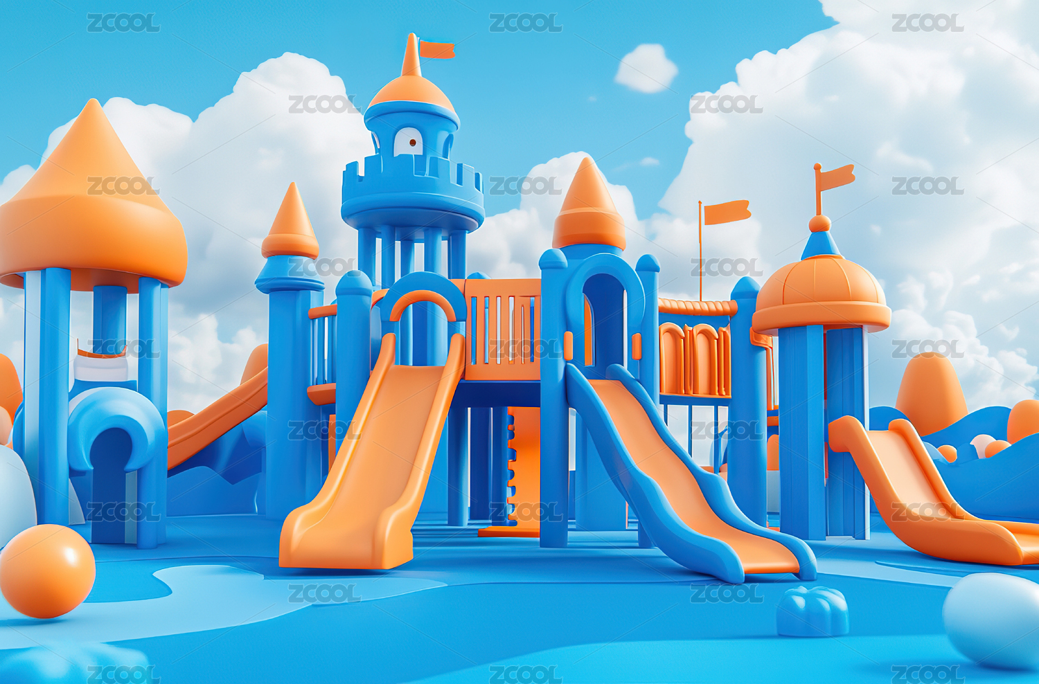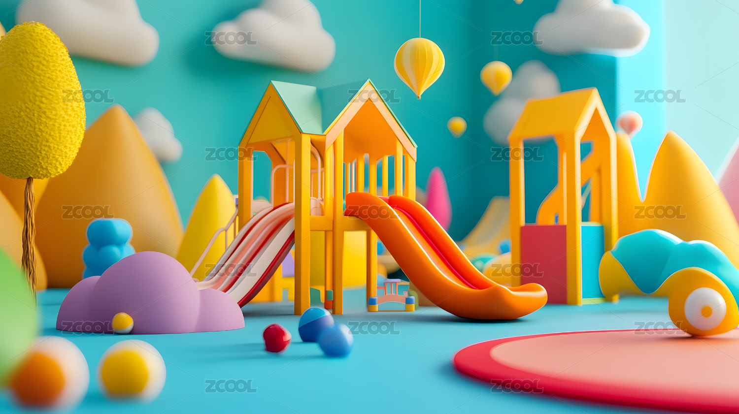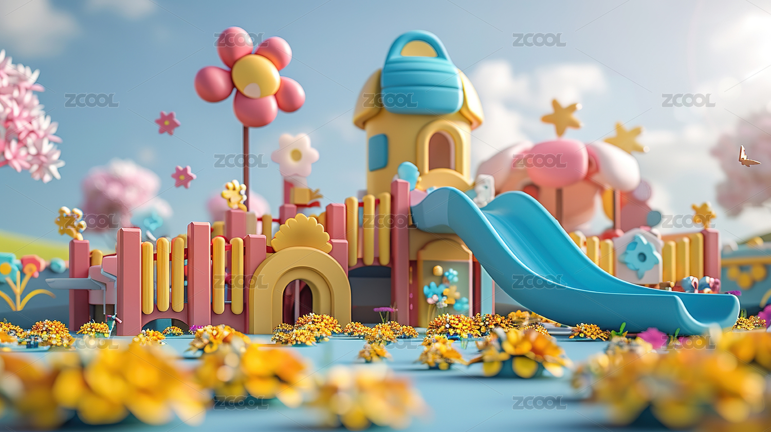 六一儿童节亲子乐园儿童游乐场童年3D插画