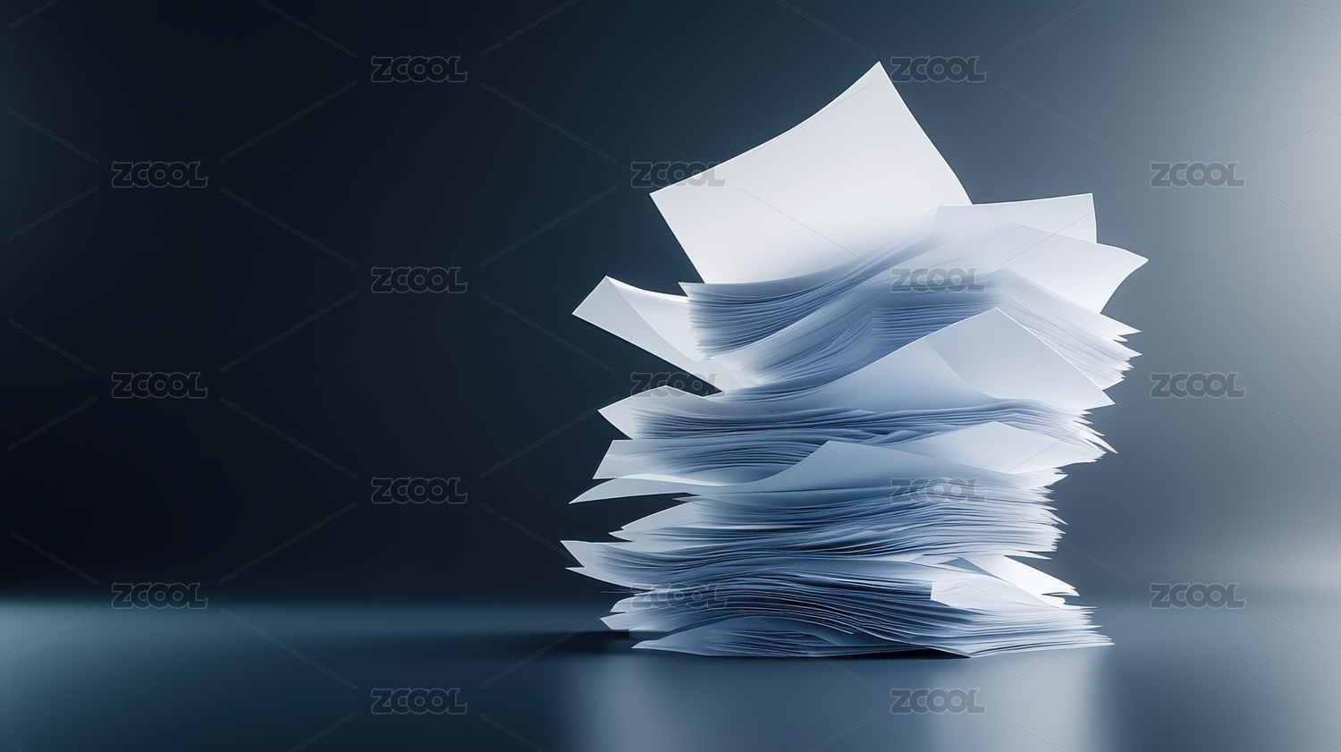 堆叠的白色纸张带有光照效果