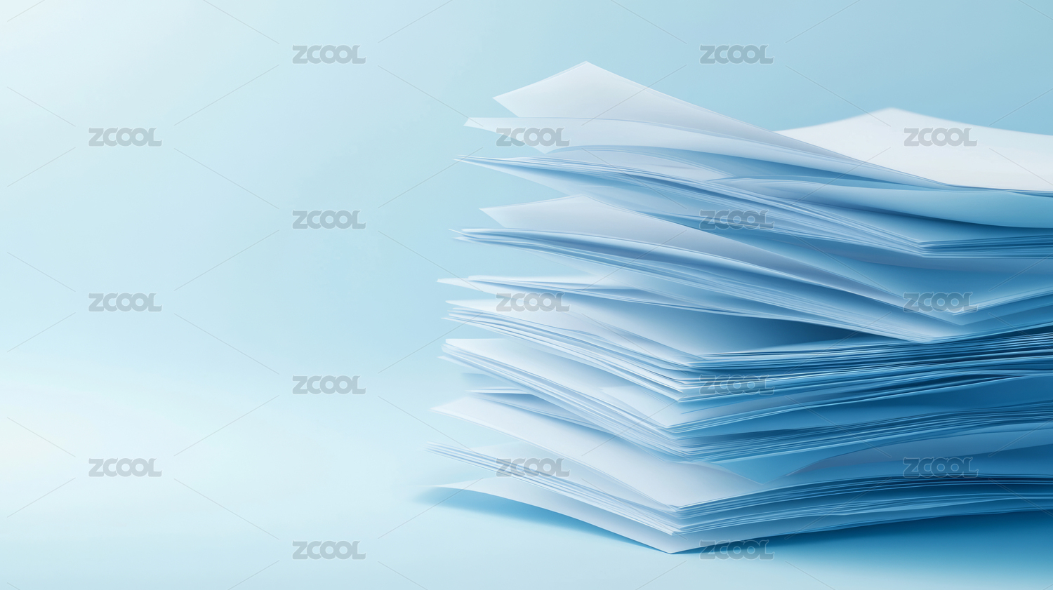 蓝色背景上的纸张堆叠