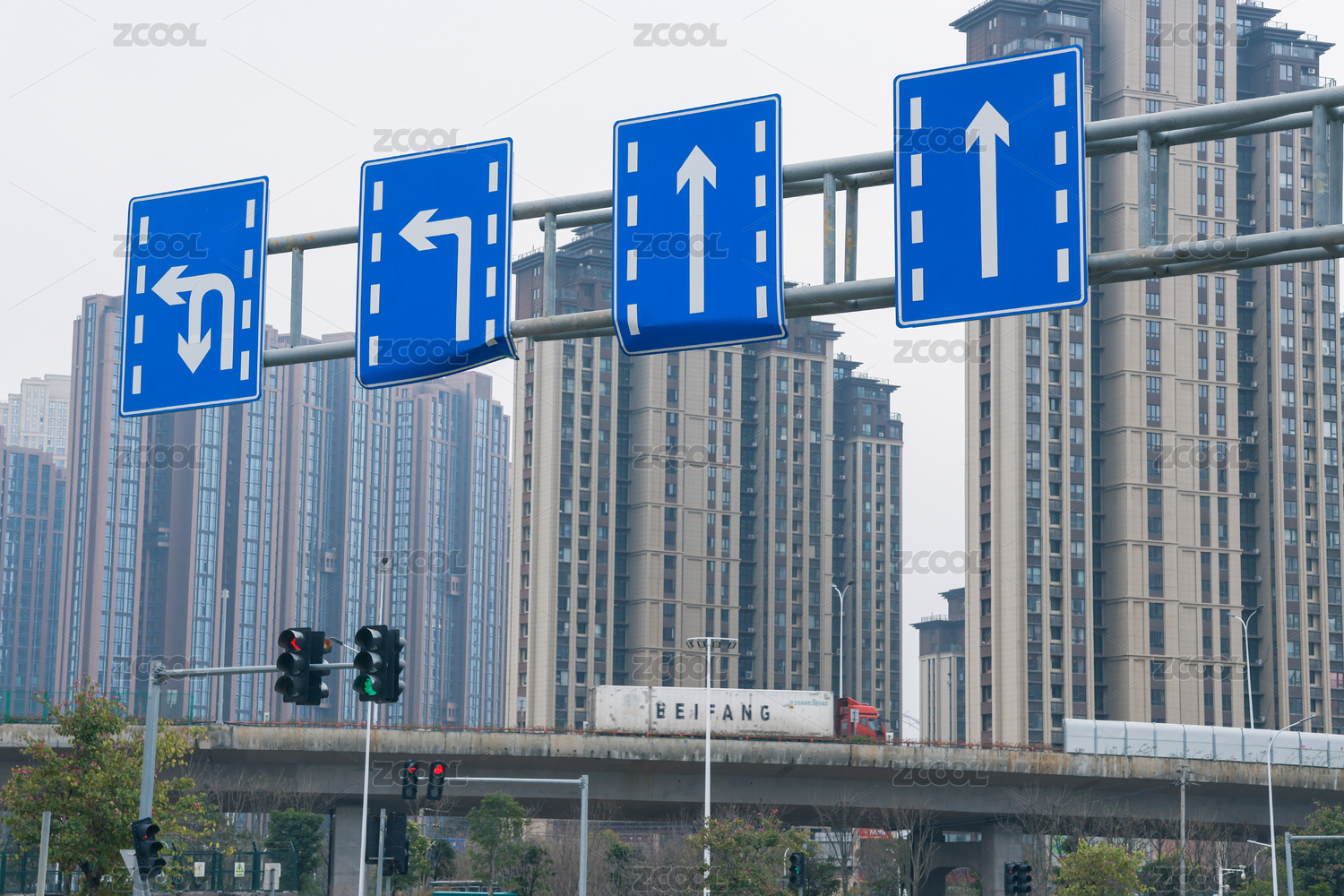 自行车急下坡交通标牌在住宅楼商品房房地产背景前