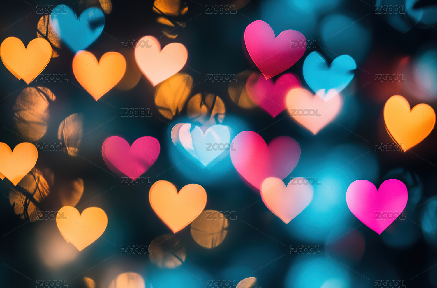 夜晚灯光照射下的心形特写镜头