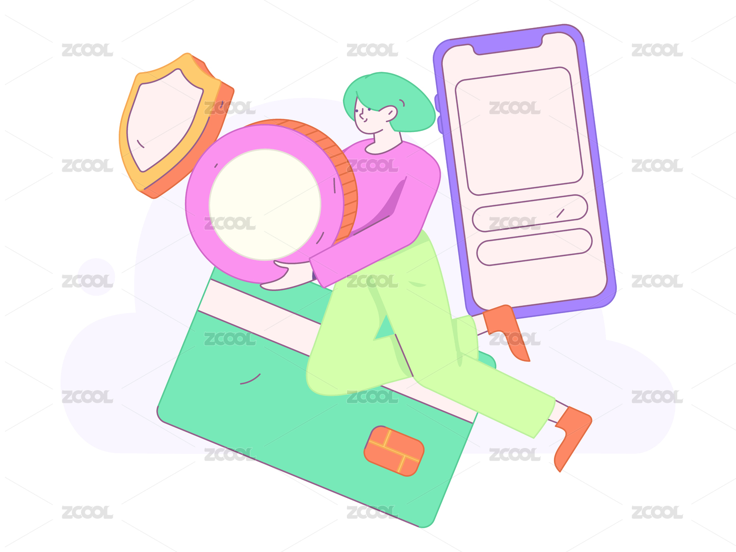 网购支付安全人物扁平矢量概念运营手绘插画